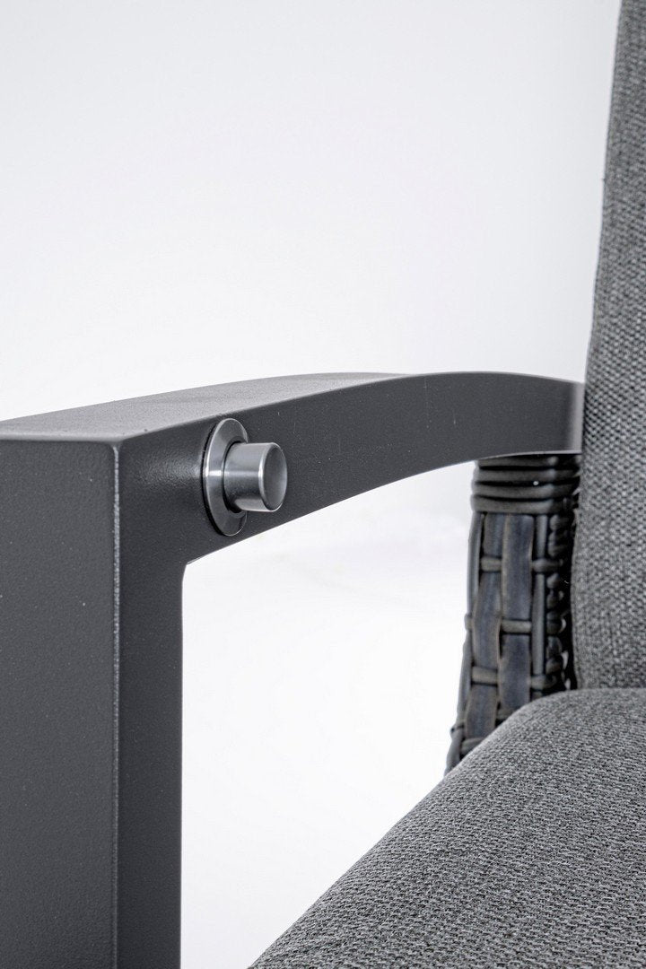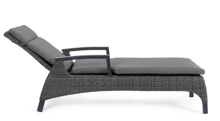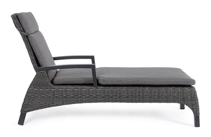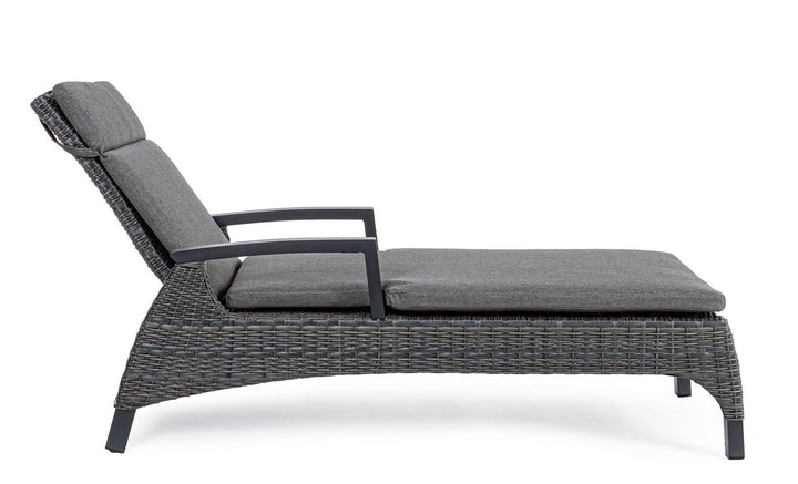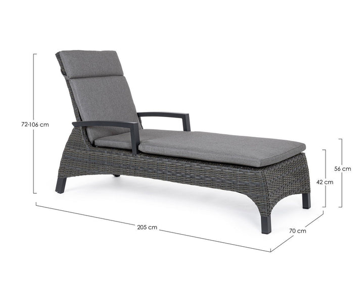 Il Lettino da giardino con schienale alto emerge come scelta preminente per chi mira a integrare relax e design nel proprio ambiente esterno. Realizzato in acciaio e rattan sintetico di colore antracite, con un cuscino incluso per massimizzare il comfort, questo lettino vanta dimensioni di 70 x 205 H 106 cm. La sua struttura in alluminio, trattata con verniciatura a polvere di poliestere, assicura una notevole resistenza agli agenti atmosferici, mentre l'elegante intreccio in fibra sintetica eleva l'estetica e facilita la manutenzione. Dotato di uno schienale regolabile, che raggiunge un'altezza di 72 cm quando completamente disteso, offre una flessibilità senza pari per trovare la postura ideale, con un'altezza della seduta di 42 cm e braccioli che si ergono a 56 cm. Questa soluzione di mobili da giardino è ideale per chi desidera un angolo di puro relax all'aperto, consentendo di immergersi completamente nella tranquillità del proprio giardino o terrazzo. Oltre a soddisfare le esigenze di comfort, il lettino si distingue per il suo design raffinato, rendendolo un elemento d'arredo di spicco per ogni spazio esterno.
