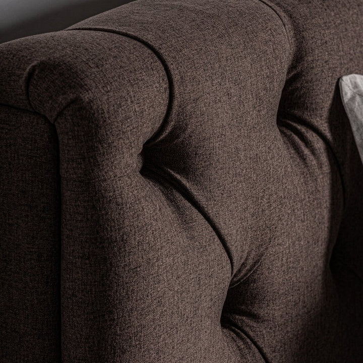 Un letto dallo stile elegante e sofisticato, ideale per ambienti raffinati che desiderano un tocco di lusso e calore nella zona notte. Realizzato artigianalmente con una solida struttura in legno di pino e mogano, è interamente rivestito in tessuto marrone che dona un aspetto avvolgente e ricercato. La testiera alta con lavorazione capitonné esalta il design classico e senza tempo, rendendolo il fulcro della camera da letto. Ogni pezzo è unico, con leggere variazioni di tonalità e venature del legno che ne esaltano l'autenticità. Perfetto per ambienti in stile classico, vintage o contemporaneo, si abbina con arredi in legno pregiato e tessuti morbidi. Un complemento di alta qualità e grande impatto estetico, pensato per chi ama l’eleganza senza tempo.