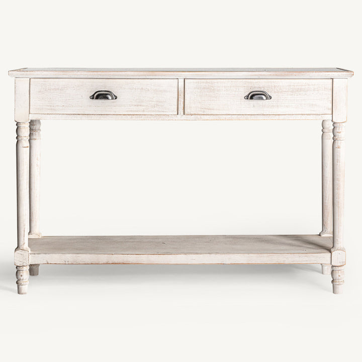 Questa consolle non è solo bella, ma anche incredibilmente pratica. Offre un ripiano inferiore e due cassetti che ti forniranno ulteriori spazi di archiviazione, aiutandoti a mantenere il tuo spazio ordinato e organizzato.