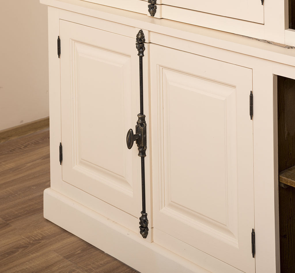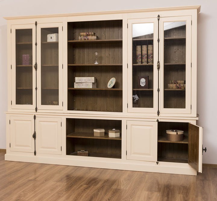 Lo stile country chic è perfetto per chi desidera un arredo elegante e funzionale che unisce tradizione e raffinatezza. Una libreria biblioteca bianco crema con interno legno marrone è la scelta ideale per creare un ambiente accogliente e ricercato, sia in salotti che in studi o uffici domestici. Grazie al suo design imponente e al contrasto cromatico tra il bianco crema e il legno naturale, questo mobile dona carattere e calore agli interni. Questa libreria in legno massello di pino, realizzata con finitura bianco crema all'esterno e interno in legno marrone, si distingue per la sua solidità e la cura artigianale nei dettagli. Le ferramenta rustiche Cremonese arricchiscono ulteriormente il design, conferendole un fascino vintage senza tempo. Con dimensioni di 300 cm di larghezza, 50 cm di profondità e 228 cm di altezza, offre ampio spazio di archiviazione per libri, oggetti decorativi o documenti. Il prodotto viene consegnato assemblato in sei colli separati, garantendo facilità di trasporto e posizionamento. Disponibile su misura e con colori personalizzabili, questa libreria si adatta perfettamente a qualsiasi spazio abitativo, creando un punto focale ricco di charme. La manutenzione è semplice: basta un panno leggermente umido per rimuovere polvere e sporco, mantenendo intatta la bellezza del legno massello. Perfetta per chi cerca librerie in legno massello online, questa soluzione d’arredo combina funzionalità e stile, donando un’eleganza senza tempo ai tuoi spazi.