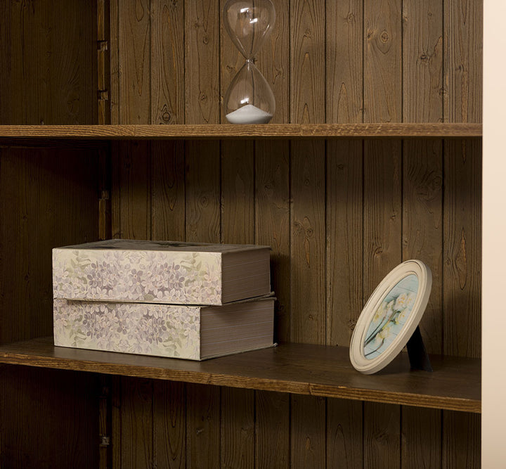 Libreria Biblioteca Country Bianco Crema con Interno Legno Marrone