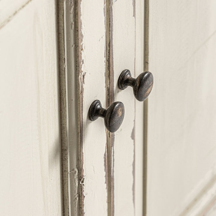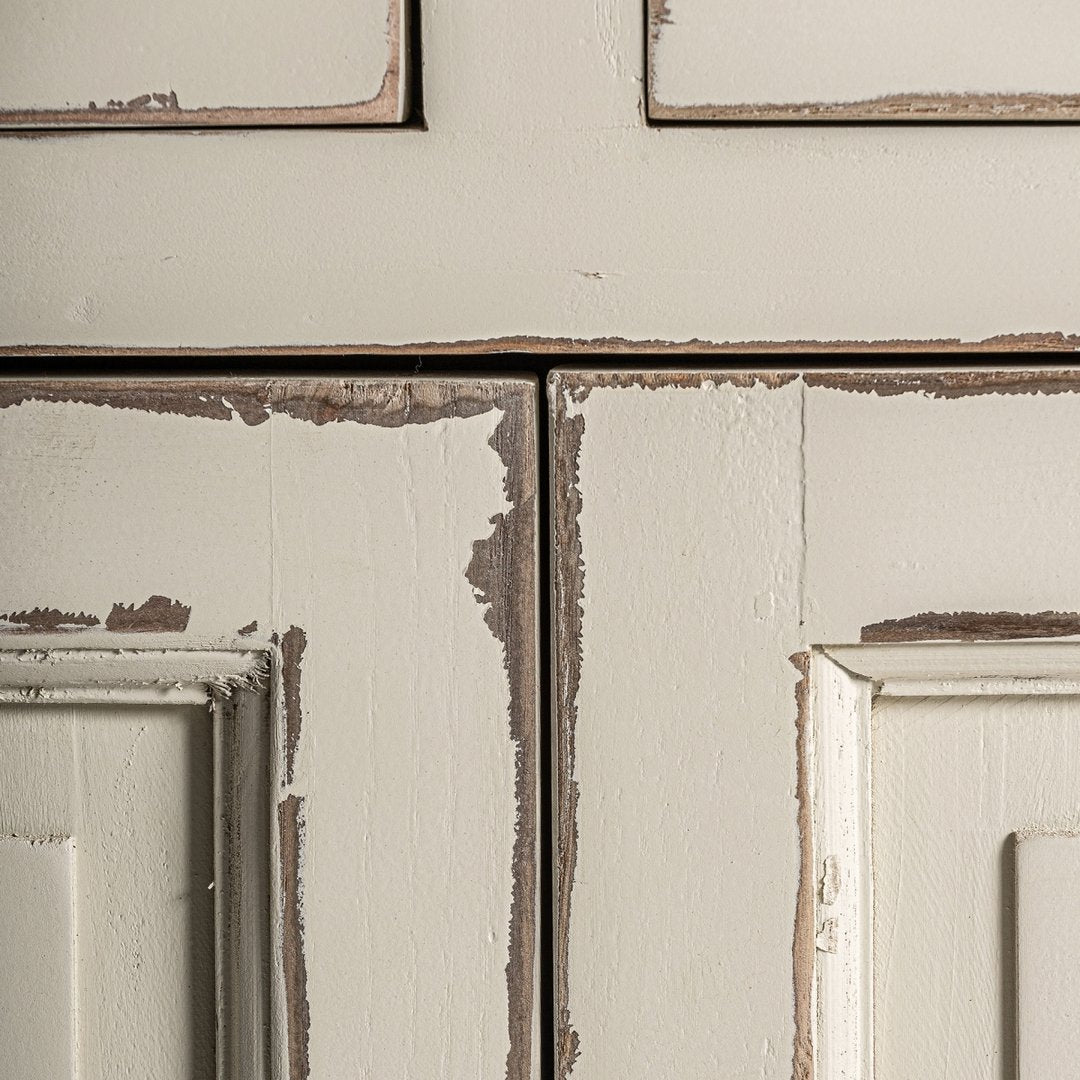 Aggiungi un tocco di elegante rusticità al tuo ambiente con la nostra affascinante Credenza Provenzale Shabby Chic. Realizzata con cura in legno massello di olmo bianco sporco, questa credenza incarna l'essenza del fascino rustico e del design vintage. Ogni pezzo è unico e lavorato a mano con maestria, rendendo questa credenza un'autentica opera d'arte.