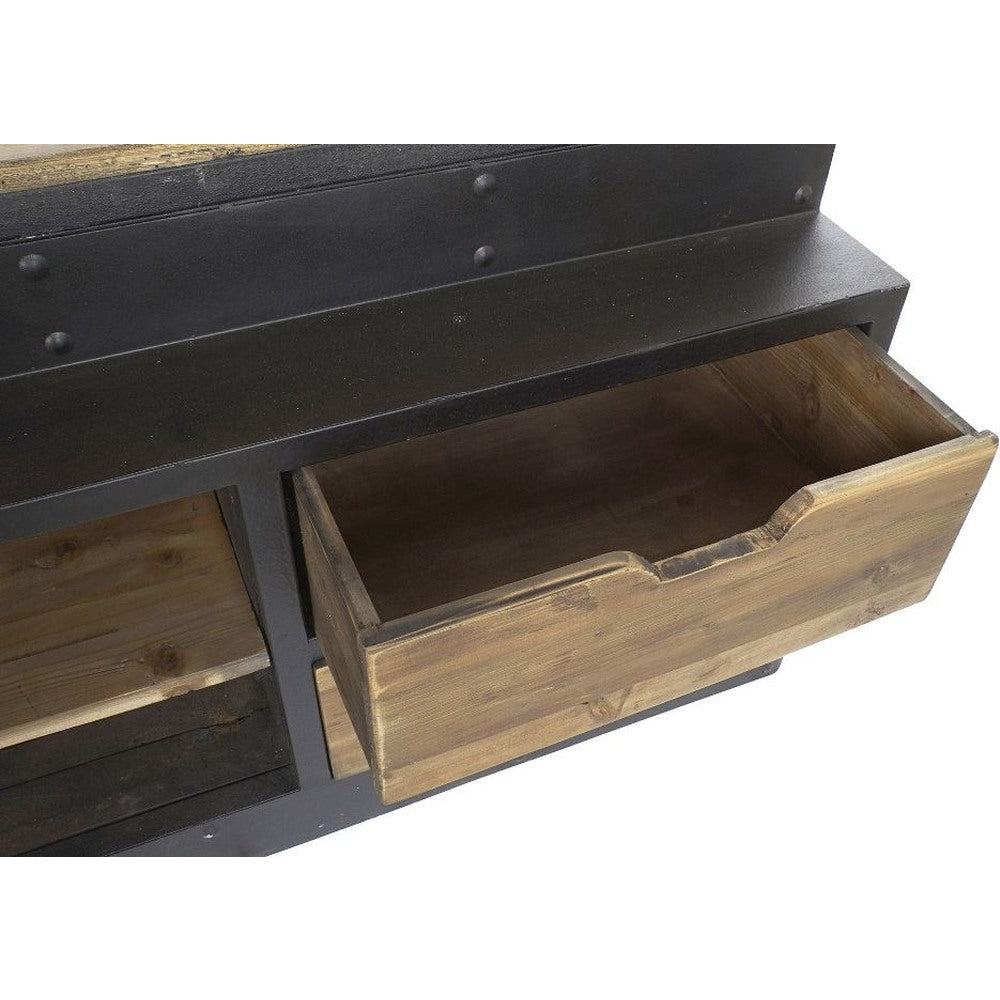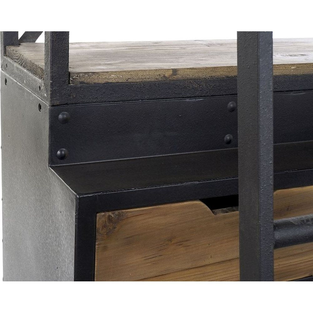 NOTE: Legno massello di pino e ferro, colore marrone/nero, 4 cassetti, 4 mensole, scala inclusa, peso 105 kg, struttura artigianale industrial chic.