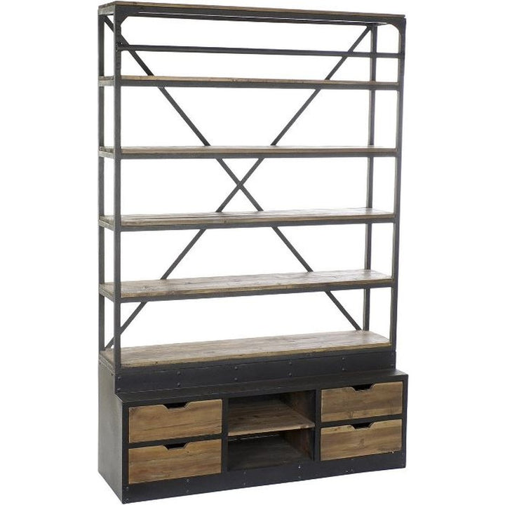 La Libreria Industriale con Scala è un arredo imponente e funzionale, ideale per chi desidera portare in casa il fascino autentico dello stile industrial. Realizzata in legno massello di pino e ferro verniciato nero, combina solidità, eleganza e spirito artigianale in un’unica struttura. Con dimensioni di 160 x 45 x 243 cm e un peso di 105 kg, presenta 4 cassetti e 4 ampie mensole che offrono grande capacità di contenimento ed esposizione. La scala in ferro scorre lungo la struttura, rendendo l’accesso ai ripiani alti semplice e pratico, mentre il contrasto tra legno marrone naturale e metallo nero dona un carattere deciso e contemporaneo. Perfetta per soggiorni, studi o biblioteche, questa libreria è un vero elemento scenografico, capace di unire funzionalità e stile. Ogni dettaglio è rifinito a mano, valorizzando le venature del legno e la struttura metallica per un effetto vintage autentico. Proposta con sconti fino al 70% su Ethnic Chic, è la scelta ideale per chi cerca librerie industriali in legno e ferro di alta qualità.