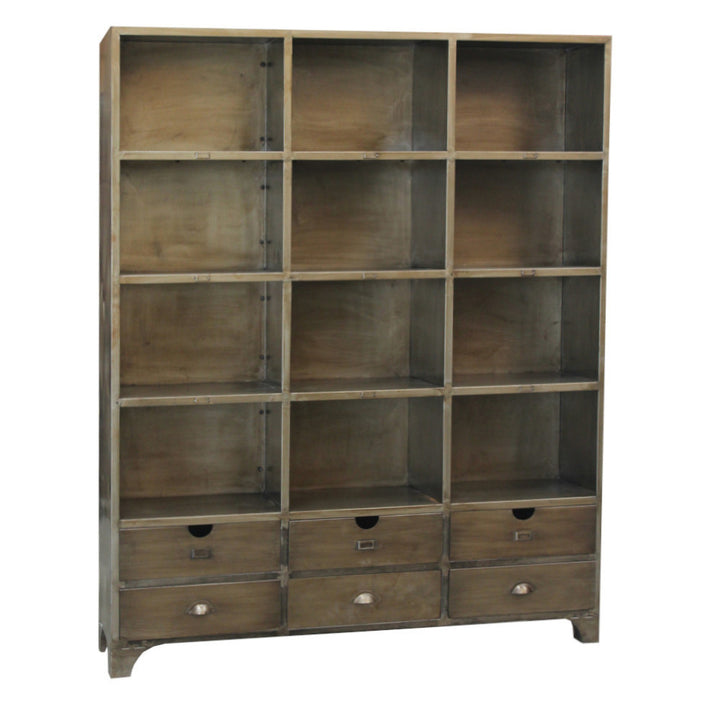 Con 12 scaffali e cassetti, questa libreria offre un ampio spazio per organizzare e mostrare libri, oggetti d'arte e altri oggetti. I cassetti aggiungono un tocco di praticità senza compromettere il design industriale.
