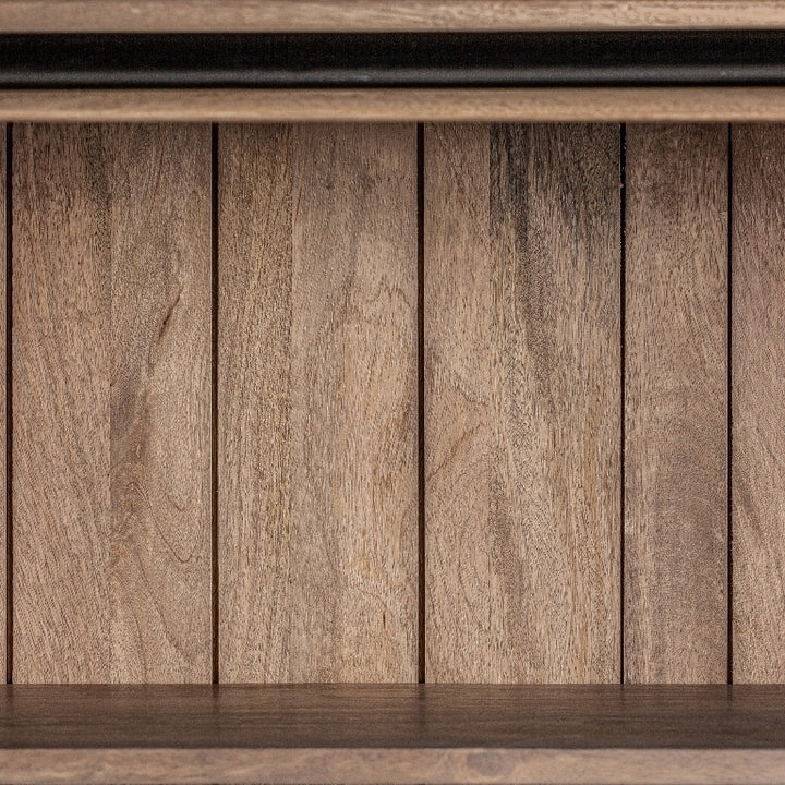 Aggiungi un tocco di eleganza coloniale al tuo spazio con la libreria in legno di mango dal colore naturale invecchiato. Questa raffinata libreria è realizzata con materiali di alta qualità, combinando legno di mango, ferro e legno DM per garantire una struttura resistente e durevole.