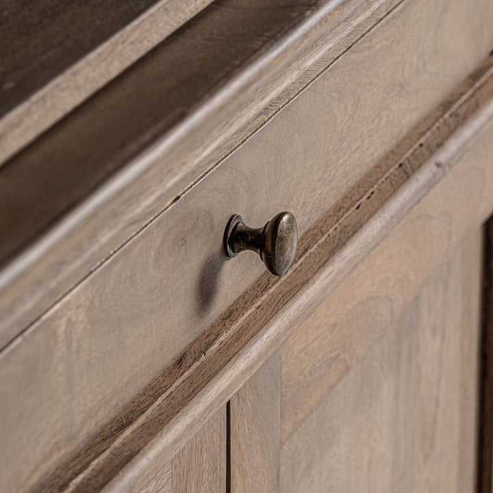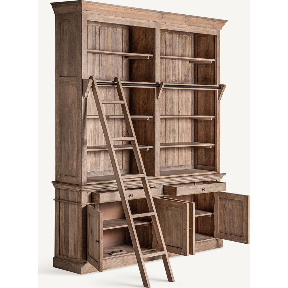 NOTE: Legno massello di mango, dettagli in ferro, struttura smontabile, 2 cassetti, 4 ante, ripiani mobili, scala inclusa, portata fino a 300 kg.