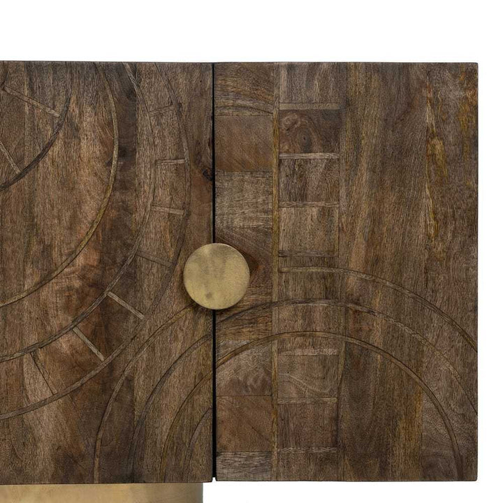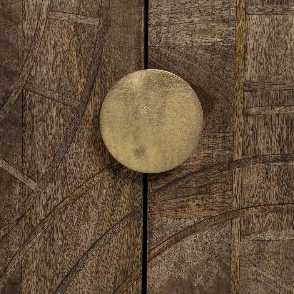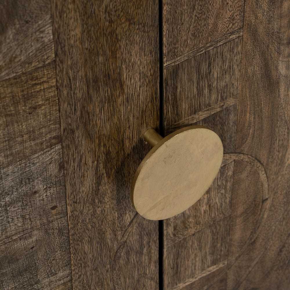 Con 4 ampie ante dalle dimensioni di 38x60 cm, offre un'organizzazione impeccabile per tutti i tuoi oggetti di valore, permettendoti di tenerli ordinati e accessibili in ogni momento Il caldo marrone-oro del legno di mango si fonde splendidamente con gli intarsi artigianali, che aggiungono un tocco etnico e unico al design complessivo. Questa credenza è tanto funzionale quanto esteticamente sorprendente. Le gambe da 15 cm di altezza conferiscono stabilità e leggerezza al mobile, garantendo una posizione sicura e affascinante nel tuo spazio. Sia che desideri un tocco etnico nel tuo arredamento o cerchi un elemento di eleganza senza tempo, la Credenza Marrone-Oro in Legno di Mango è la scelta perfetta. Acquista ora questa magnifica Credenza Marrone-Oro in Legno di Mango e impreziosisci il tuo ambiente con stile, arte e funzionalità!