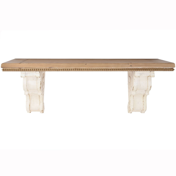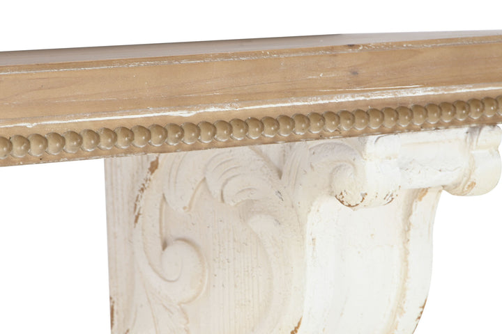 La Mensola Provenzale con Capitelli si distingue all'interno della collezione di "mensole provenzali online" per il suo design ispirato al fascino della campagna francese. Il piano realizzato in legno di abete è arricchito da una cornice accuratamente decorata e da basi a capitelli di un bianco anticato, che ne accentuano il profilo classico e romantico. Pesante 18 kg e con misure di 120 x 35 cm, con un'altezza di 50 cm, questa mensola non è solamente un elemento funzionale per ogni spazio abitativo, ma è anche un dettaglio d'arredo capace di catturare l'attenzione e aggiungere un tocco di eleganza rustica. Ideale per coloro che apprezzano il calore e l'estetica delle decorazioni ispirate alla Provenza, rappresenta una soluzione d'arredo tanto pratica quanto esteticamente piacevole.