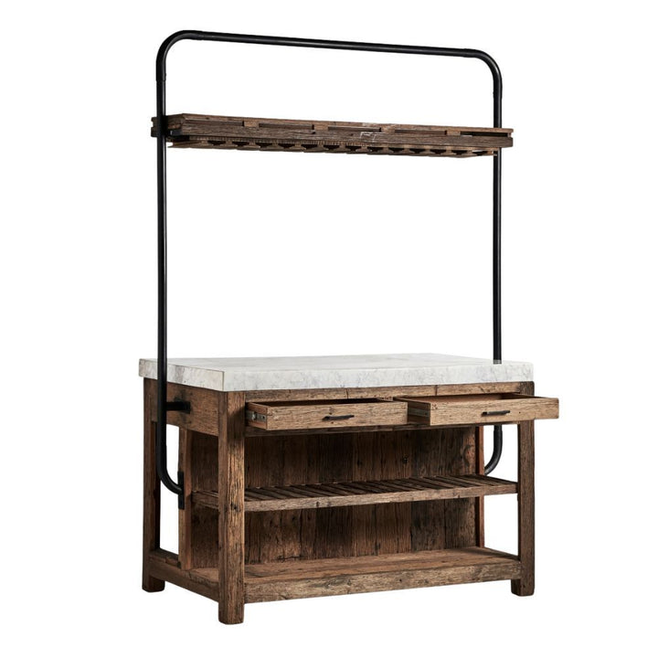 Mobile Bar Industriale con Bancone in Legno e Marmo