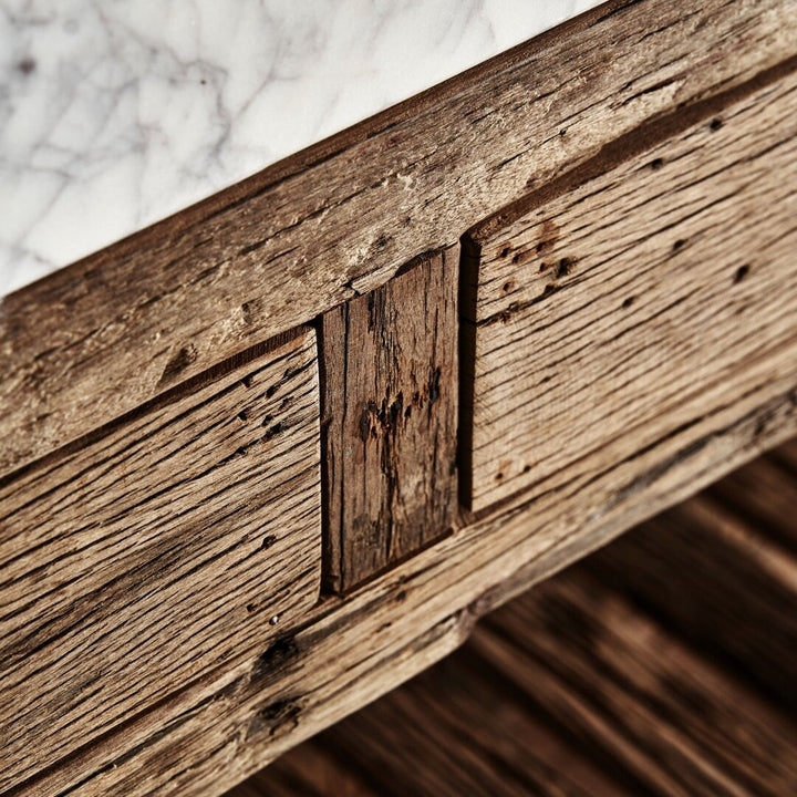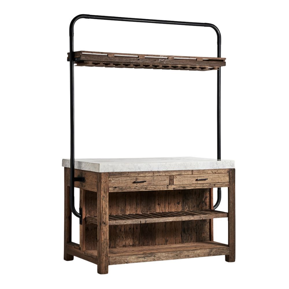 Dal carattere deciso e dallo stile industriale, questo mobile bar unisce il fascino del legno riciclato con la solidità del ferro e l’eleganza del marmo. Perfetto per ambienti dal design moderno e vintage, è ideale per bistrot, locali commerciali e spazi dal gusto loft.