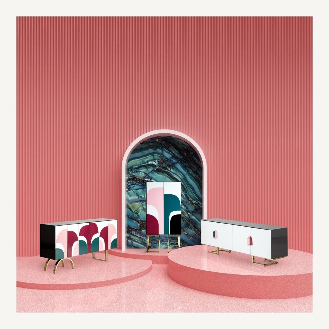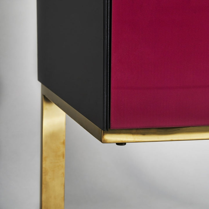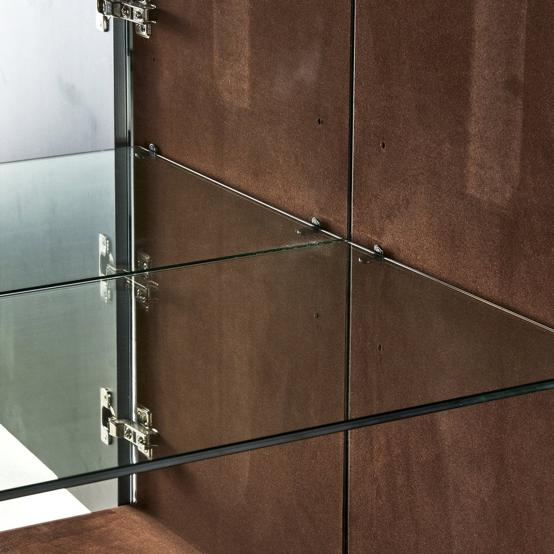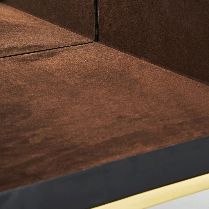 Ispirato allo stile Art Déco, questo mobile unisce ferro dorato, vetro e legno in un design iconico e funzionale. Le sue linee geometriche e i dettagli raffinati lo rendono una vera opera d'arte, perfetta per chi cerca un tocco di eleganza retrò nel proprio soggiorno. Con due porte scorrevoli e ripiani interni regolabili, il mobile offre ampio spazio per organizzare oggetti e decorazioni, supportando fino a 15 kg per ripiano. Le gambe in ferro dorato aggiungono stabilità e un tocco moderno, esaltando l’estetica senza tempo del design Art Déco. Ideale per arricchire qualsiasi ambiente con uno stile unico e sofisticato.