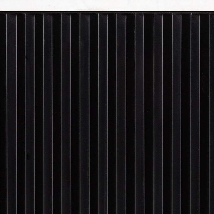 Mobile Porta TV Art Déco in Marmo Nero, Ferro Bianco e MDF Dorato