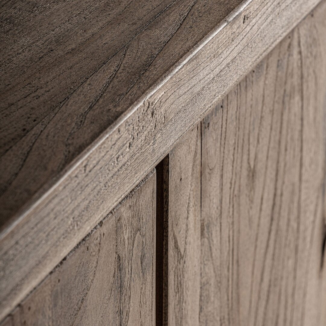 Realizzato artigianalmente in legno di olmo riciclato con una finitura marrone chiaro e effetto usurato, si distingue per il suo aspetto naturale e vissuto, valorizzato da nodi, crepe e irregolarità che rendono ogni pezzo unico. Dotato di comode ante e ampio spazio contenitivo, è perfetto per ospitare dispositivi e accessori multimediali. Fa parte della serie S.Cotswolds ed è pensato per chi cerca un arredo robusto e ricco di personalità. Ideale per soggiorni o taverne in stile rustico o country chic, è facile da pulire e garantisce un impatto estetico caldo e naturale.