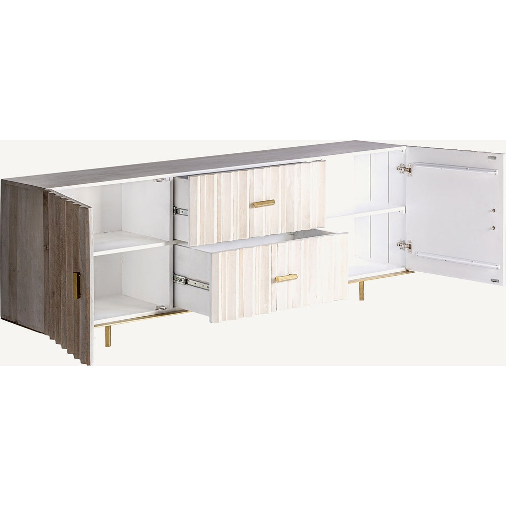 Mobile Porta TV Art Déco in Legno di Mango Crema e Ferro Dorato
