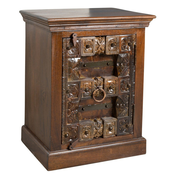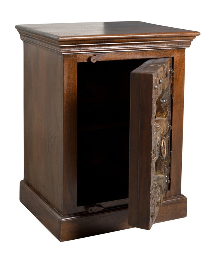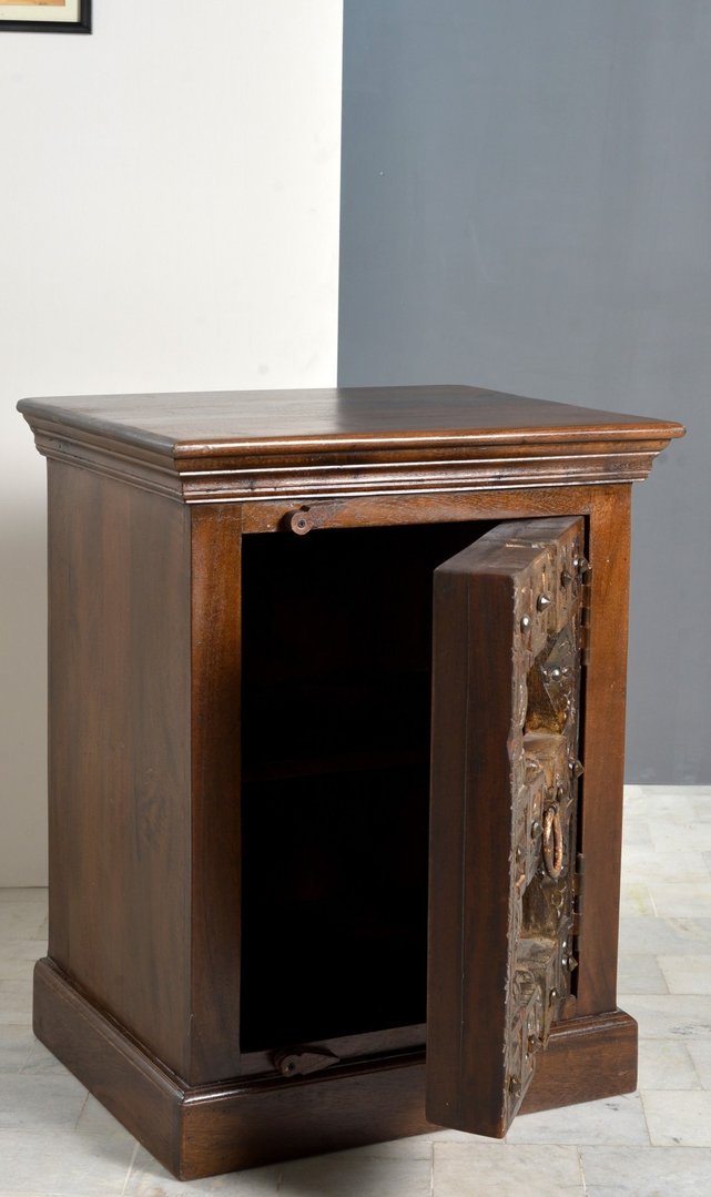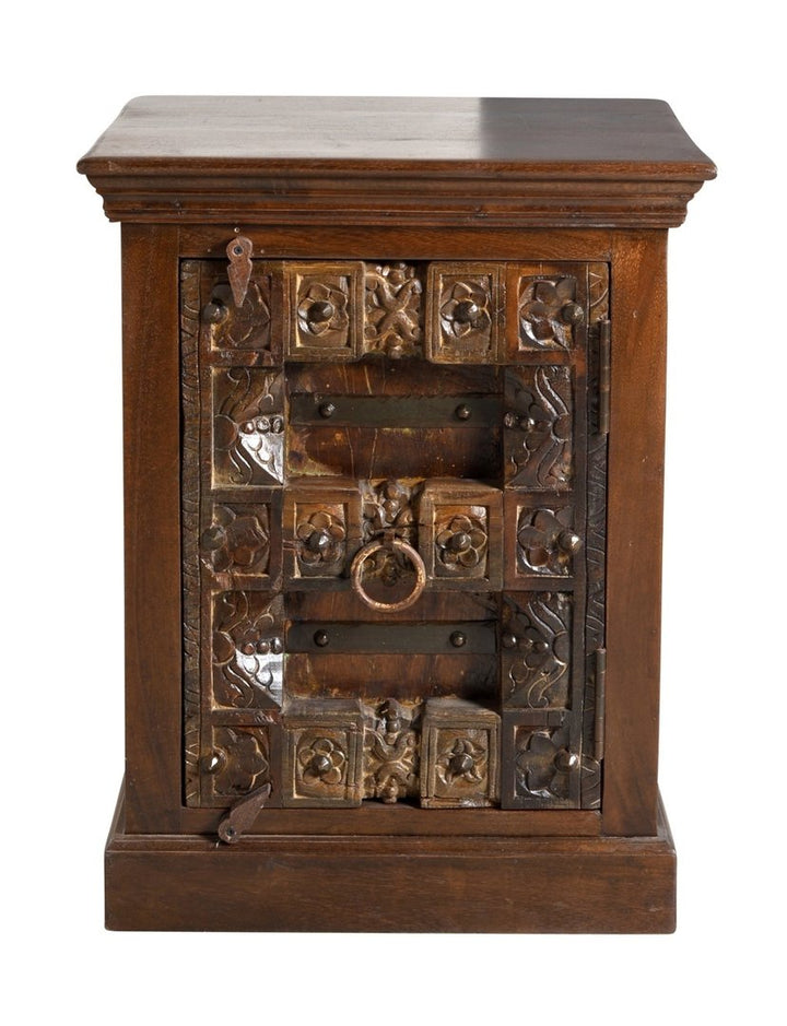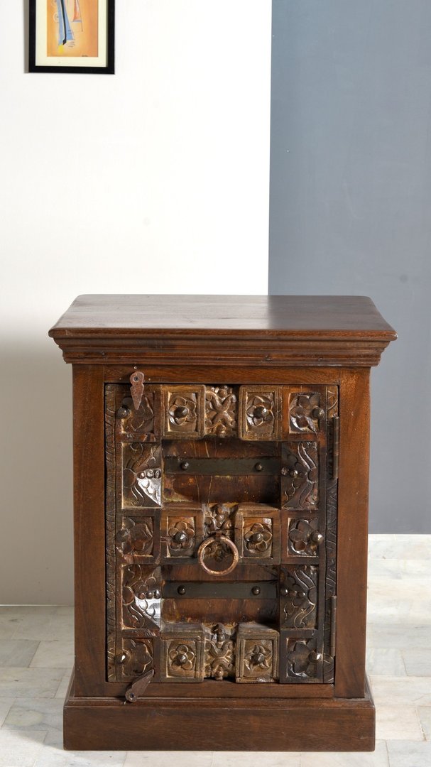 Mobiletto etnico indiano in legno massello con ante realizzate da porte indiane restaurate. Questo pezzo unico, dalle dimensioni compatte di 55 x 45 x 70 cm, aggiunge un tocco autentico e raffinato a qualsiasi ambiente. Perfetto per chi cerca un mobile esclusivo e originale. Acquistalo comodamente online.