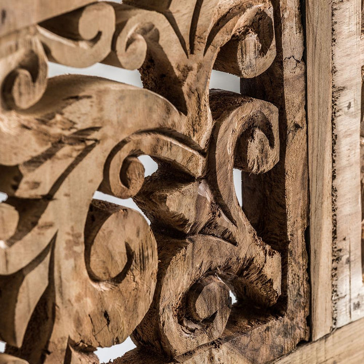L’eleganza dello stile orientale si fonde con la delicatezza provenzale in questo pannello murale di pregio, realizzato interamente in legno di teak naturale. L’intaglio artigianale e la finitura calda in marrone aggiungono profondità e carattere, trasformando qualsiasi parete in un punto focale di design. Le sue proporzioni importanti lo rendono ideale per salotti, ingressi, camere da letto e spazi dal gusto raffinato e ricercato. Ogni pezzo è una pieza única: piccole variazioni di tono, nodi o microfessure sono parte del fascino autentico del teak lavorato a mano. Proposto con sconti fino al 70% su Ethnic Chic.