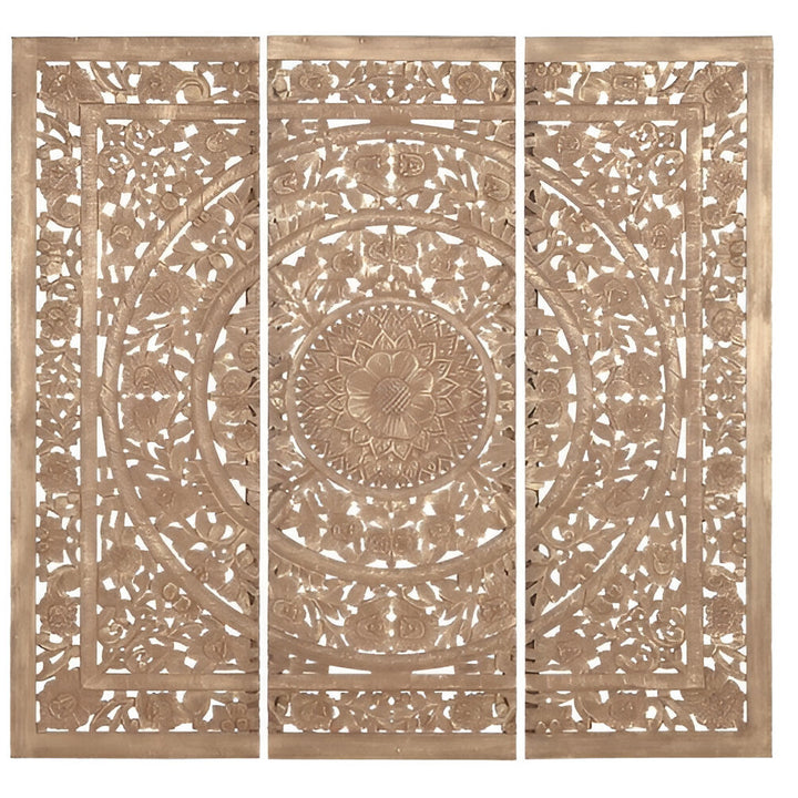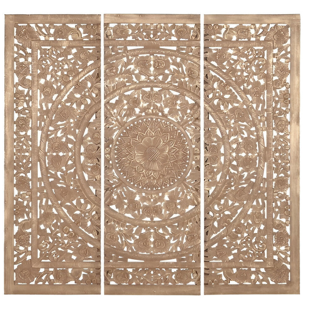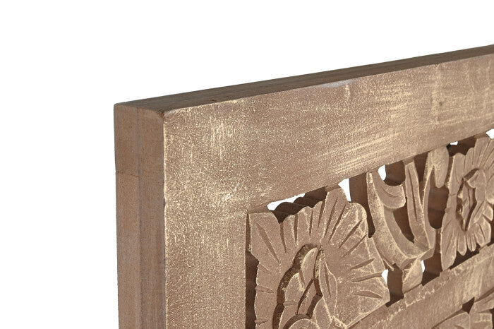Lo stile orientale prende vita in questa imponente testata letto murale, realizzata in legno naturale intagliato. Le dimensioni di 180 x 3,5 cm e un'altezza di 180 cm la rendono ideale per arredare la parete dietro il letto, trasformandola in un punto focale di eleganza. Il legno è trattato con una finitura decapata, che aggiunge un tocco vintage e rustico al design. I motivi intagliati richiamano l'artigianato tradizionale orientale, donando alla stanza un'atmosfera esotica e sofisticata. Perfetta per chi cerca una testata orientale decapata, questa testata murale è ideale per completare un ambiente con uno stile unico e ricco di carattere.