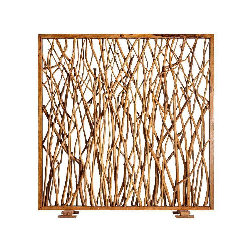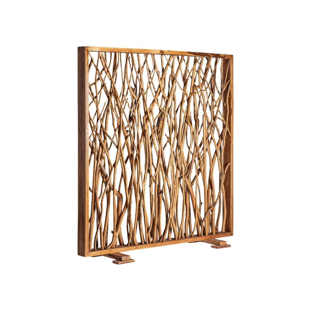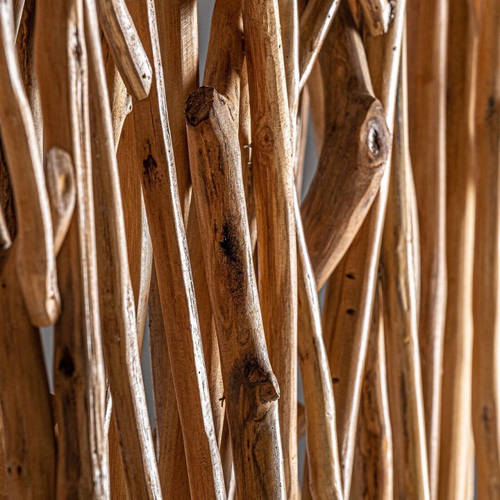 Paravento Etnico in Legno di Teak Anticato e Fibre Naturali