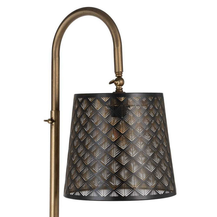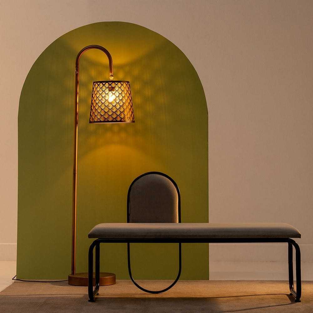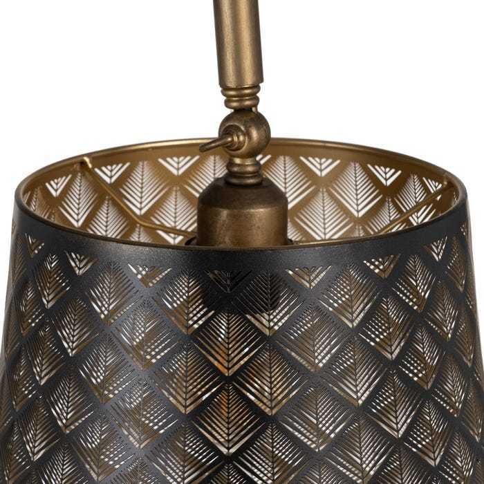 Realizzata in metallo dorato anticato, questa piantana offre un aspetto affascinante e sofisticato che si adatta perfettamente agli ambienti di stile etnico chic.