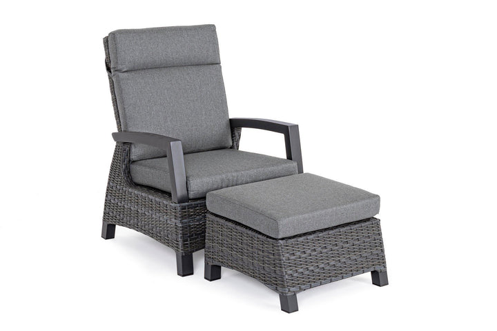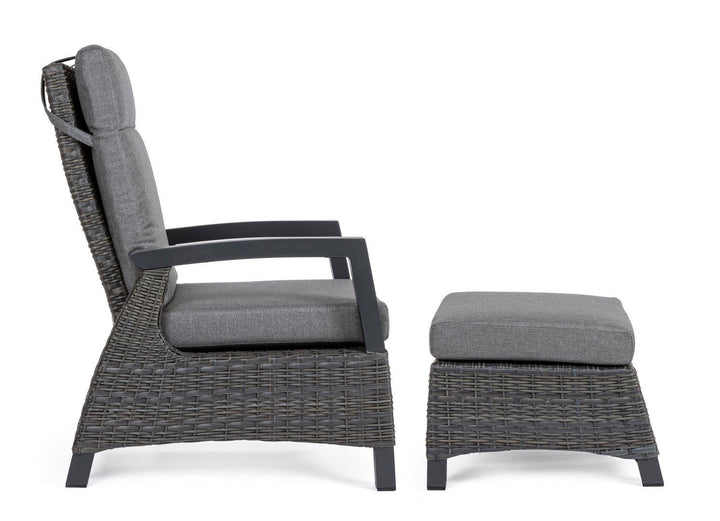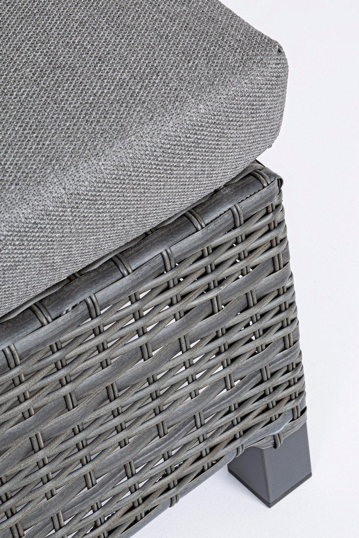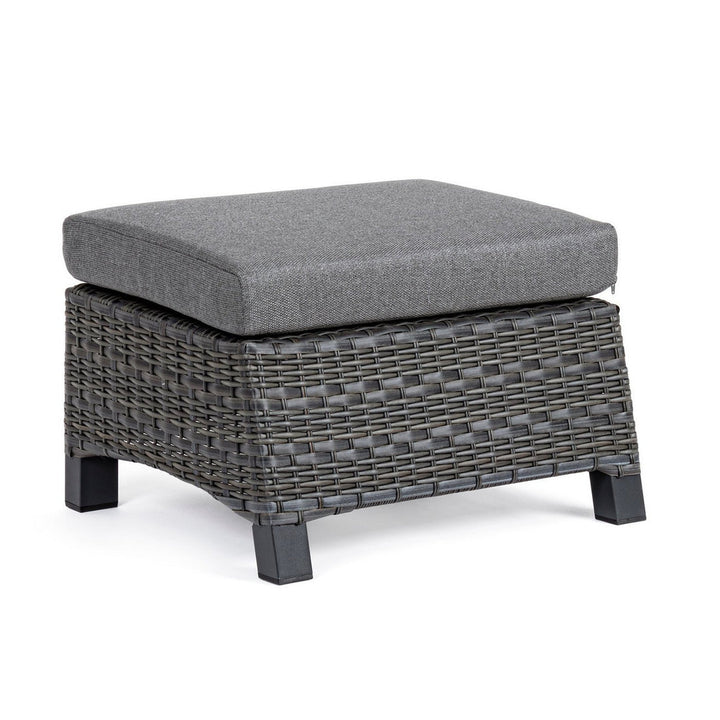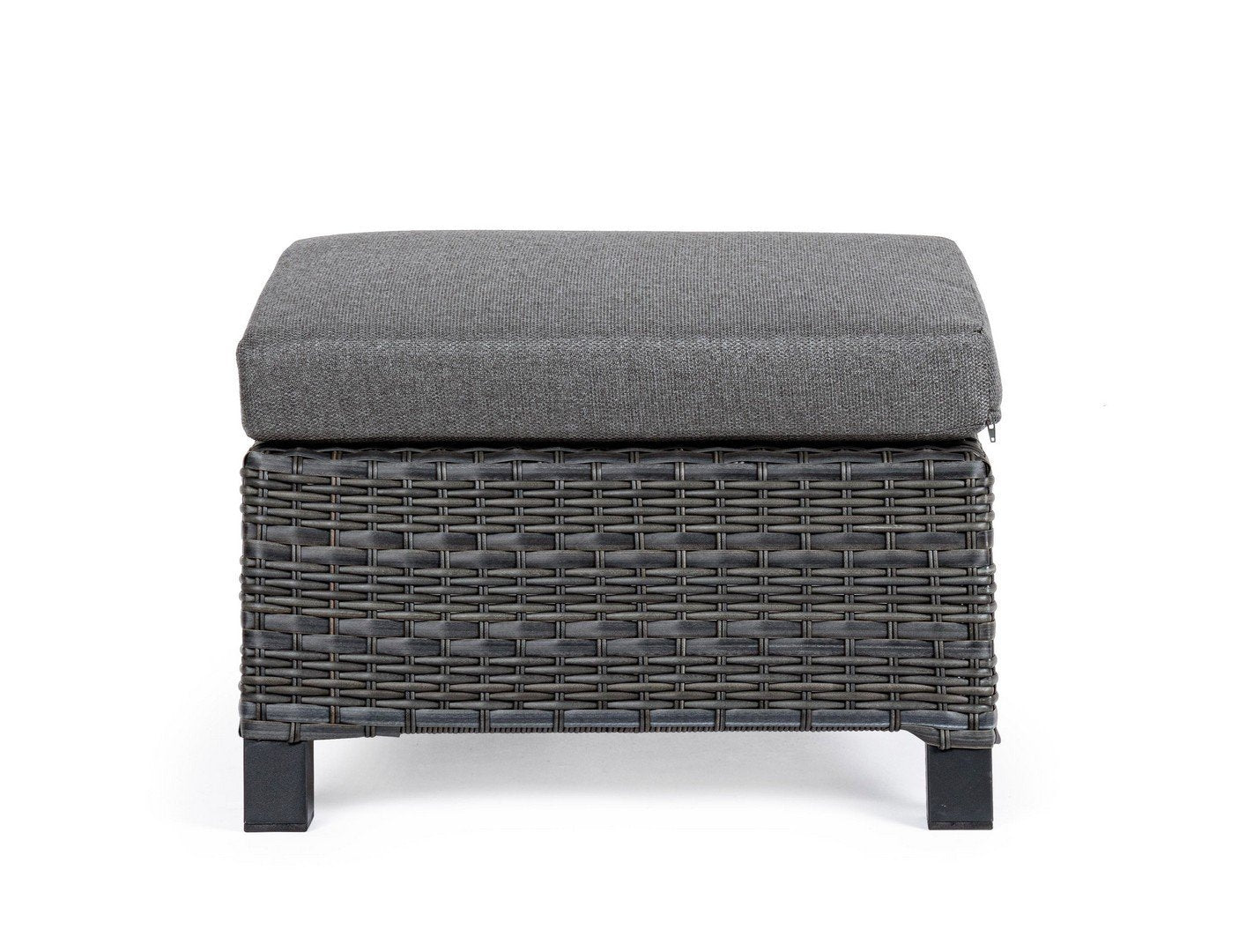 Il Poggiapiedi Pouf da giardino della stessa linea rappresenta un eccellente complemento per chi cerca non solo funzionalità ma anche stile nel proprio arredo esterno. Realizzato in acciaio e rattan sintetico di colore antracite, con dimensioni di 57 x 60 H 40 cm, questo poggiapiedi è l'ideale per aggiungere un tocco di eleganza e comfort in più al vostro spazio all'aperto. La sua struttura in alluminio, verniciata a polvere di poliestere, assicura durabilità e resistenza, rendendolo perfetto per l'uso esterno, mentre l'intreccio in fibra sintetica contribuisce alla sua estetica raffinata e al contempo garantisce una facile manutenzione. Questo complemento di arredo, parte della nostra offerta di mobili da giardino, è progettato per integrarsi armoniosamente con sedie e divani dello stesso stile, offrendo una soluzione pratica per rilassarsi all'aperto. La sua leggerezza e dimensioni lo rendono facilmente spostabile, adattandosi a qualsiasi configurazione del vostro spazio esterno, per garantire il massimo del comfort e dell'eleganza.