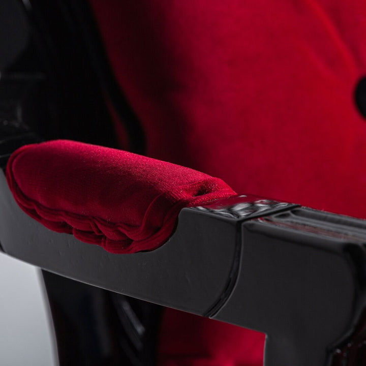 Poltrona Design Coloniale Rossa in Legno di Pino e Velluto