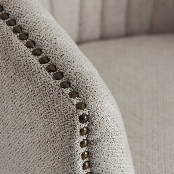 NOTE: Legno di abete bianco, rivestimento in velluto grigio, borchie dorate antiche, seduta 43 x 46 x 13 cm, altezza seduta 50 cm, portata 120 kg, prodotto artigianale, pulizia con panno umido e detergente delicato.