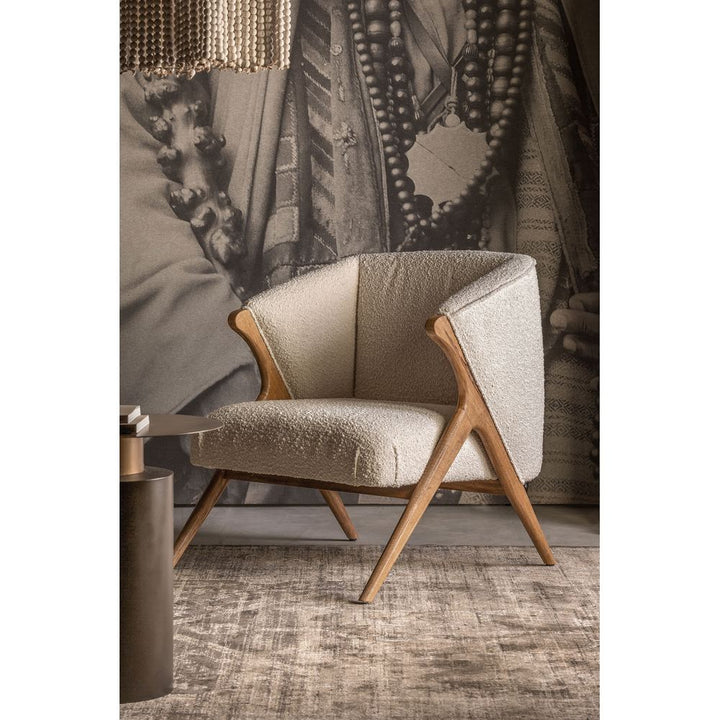 Poltrona Vintage Bouclè di Lusso in Legno di Pino e Cotone