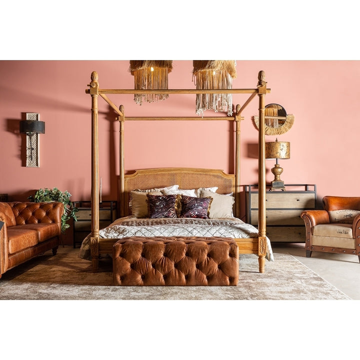POLTRONA LIVERPOOL, COLORE CIOCCOLATO, STILE VINTAGE. REALIZZATO IN LEGNO DI MANGO, ABBINATO A COTONE E PELLE.