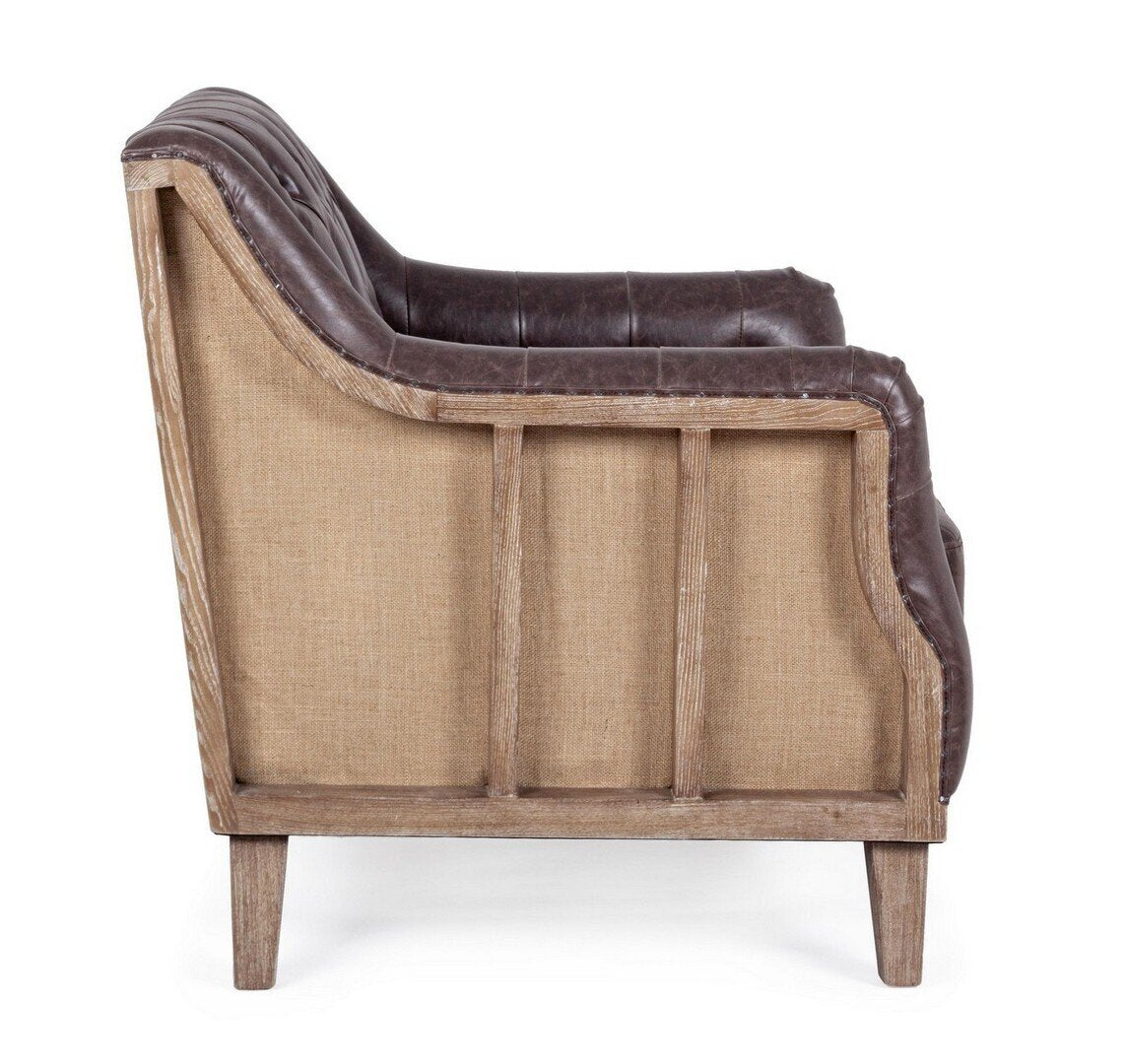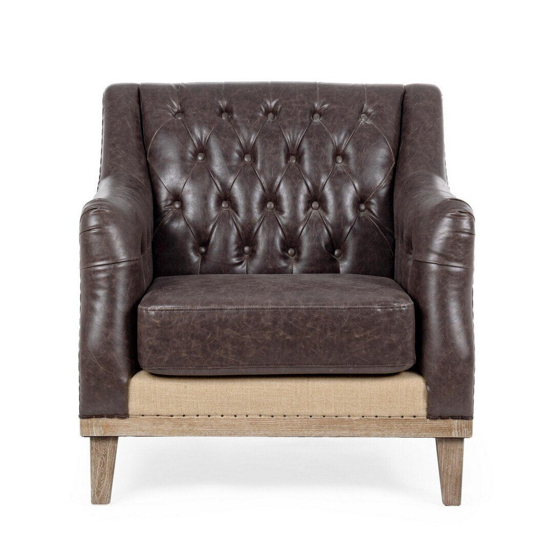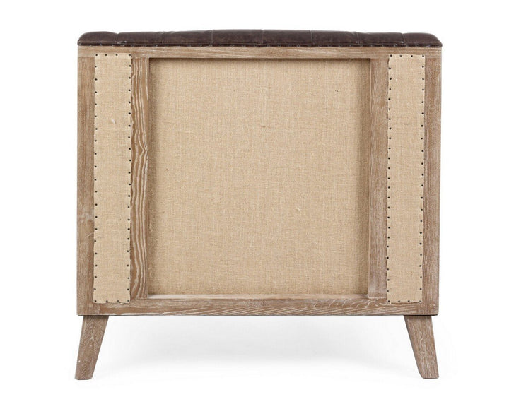 Poltrona Vintage Rustico Chic in Legno di Frassino e Similpelle Capitonné