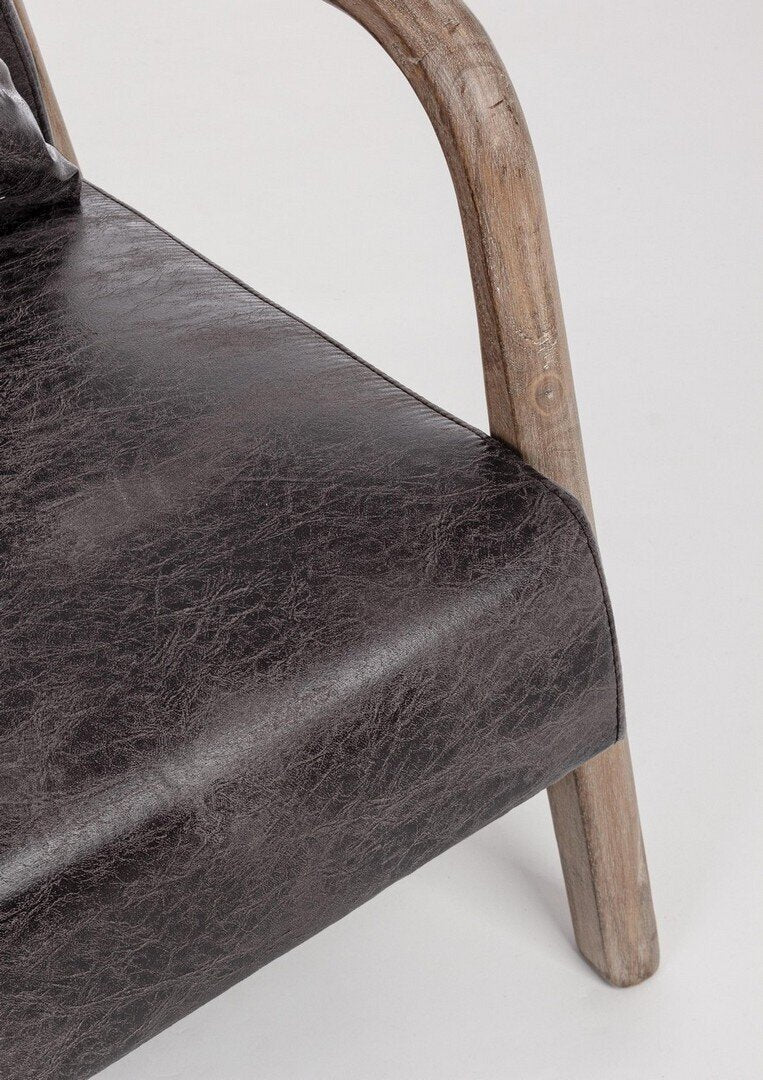 Questa elegante poltrona vintage da lounge è realizzata con una struttura in rubber wood e un rivestimento in similpelle marrone effetto invecchiato, perfetta per aggiungere un tocco sofisticato al tuo salotto o spazio relax. Le linee essenziali del legno curvato e la texture autentica del rivestimento evocano un design intramontabile, ideale per interni dal carattere vintage o moderno. La seduta non sfoderabile offre comfort grazie all’imbottitura ben bilanciata, mentre le dimensioni generose garantiscono spazio e relax. L’altezza ergonomica della seduta (34 cm) e dei braccioli (57 cm) la rendono adatta per momenti di lettura o conversazione. Perfetta per chi cerca poltrone vintage scontate, questa poltrona unisce materiali di alta qualità e design funzionale, valorizzando qualsiasi ambiente con il suo stile unico. Per la manutenzione, pulire con un panno umido per preservare la bellezza dei materiali.