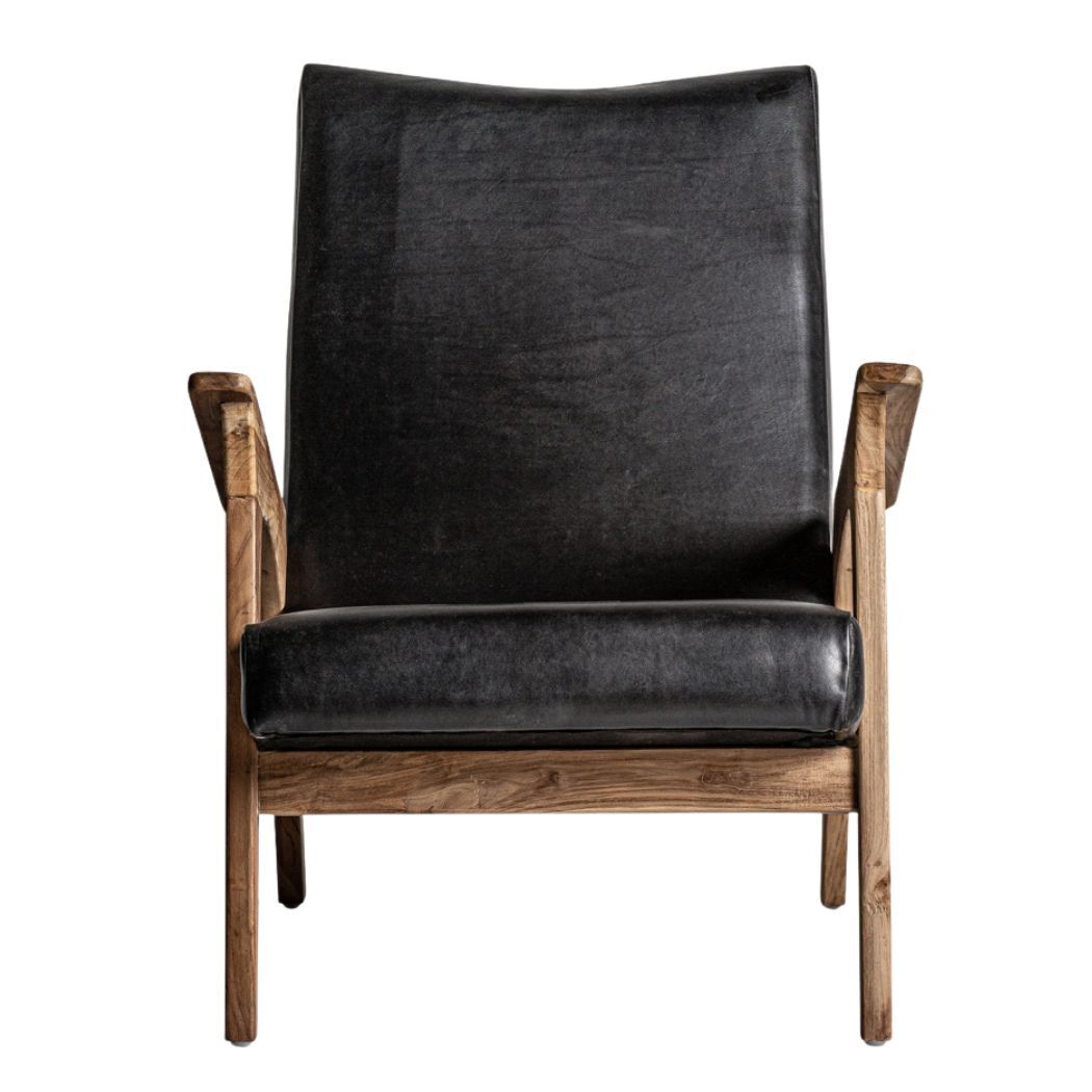 Poltrona Moderna in Legno di Teak e Pelle Nera