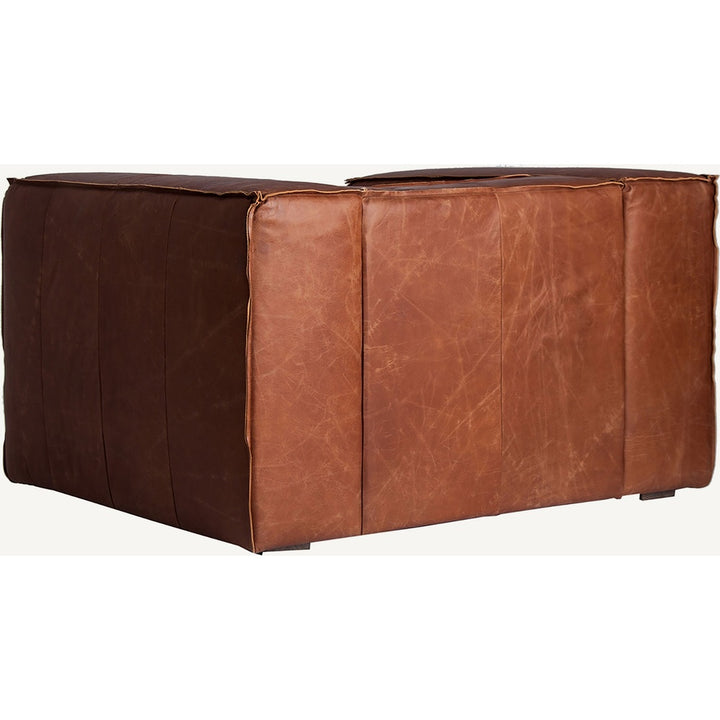 NOTE: Pelle cuoio marrone, abete FSC, gambe smontabili, peso 37 kg, pezzo unico.