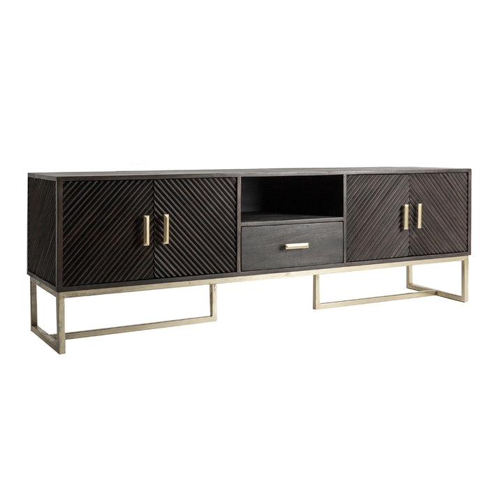 Mobile Porta TV Art Déco in Ferro Marrone e Legno di Mango Dorato