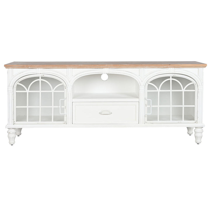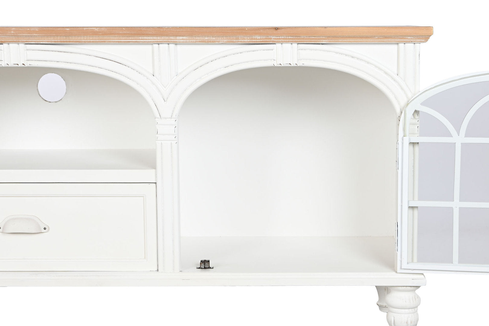 Questo porta TV in stile provenzale shabby è realizzato in legno di abete e metallo. Ideale per arredare con gusto e funzionalità il tuo soggiorno o sala TV. Include ampi spazi per riporre dispositivi e accessori, per un angolo relax sempre ordinato. Nº Cassetti: 1. Larghezza cassetto: 50 cm. Fondo cassetto: 32 cm. Altezza cassetto: 16,5 cm. Nº Porte: 2. Larghezza porta: 40 cm. Fondo porta: 4 cm. Altezza porta: 37 cm.