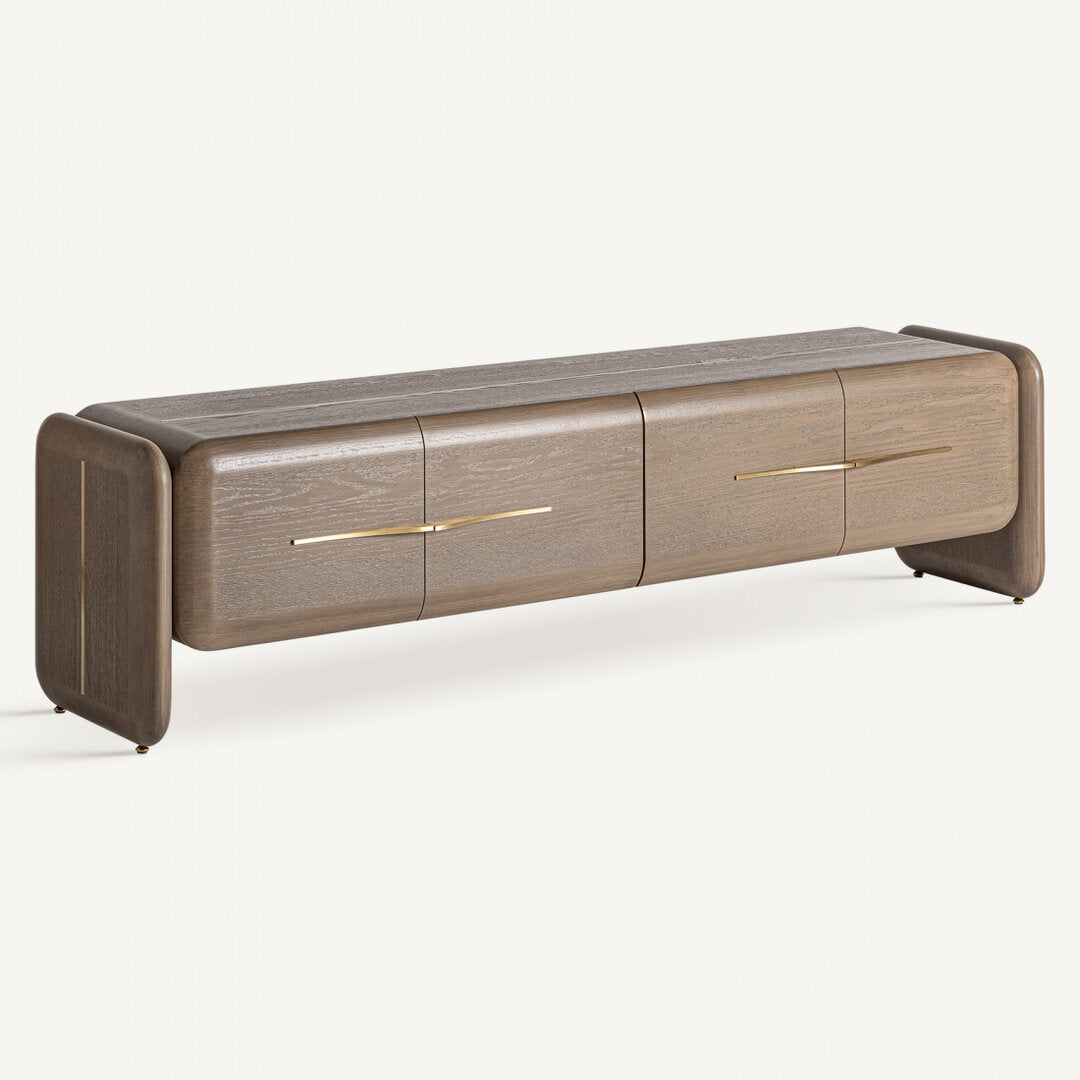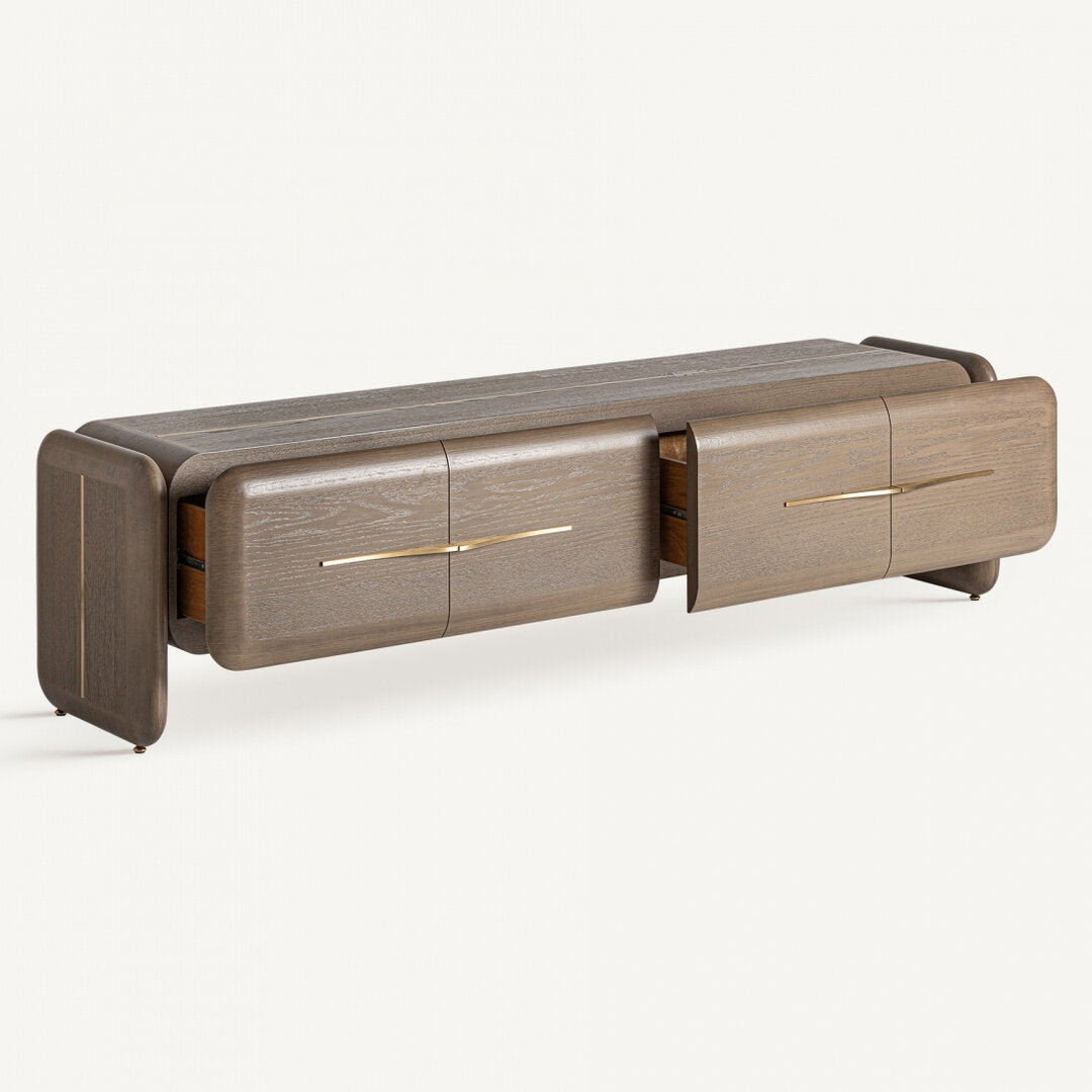 Porta TV Moderno Etnico in Legno di Rovere e Ottone