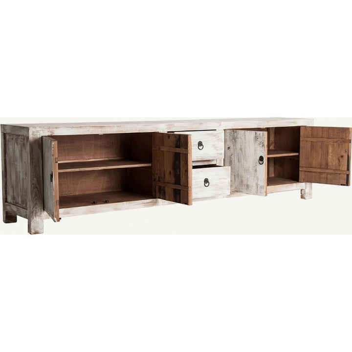 Mobile Porta TV Provenzale in Legno di Pino Riciclato Bianco Slavato