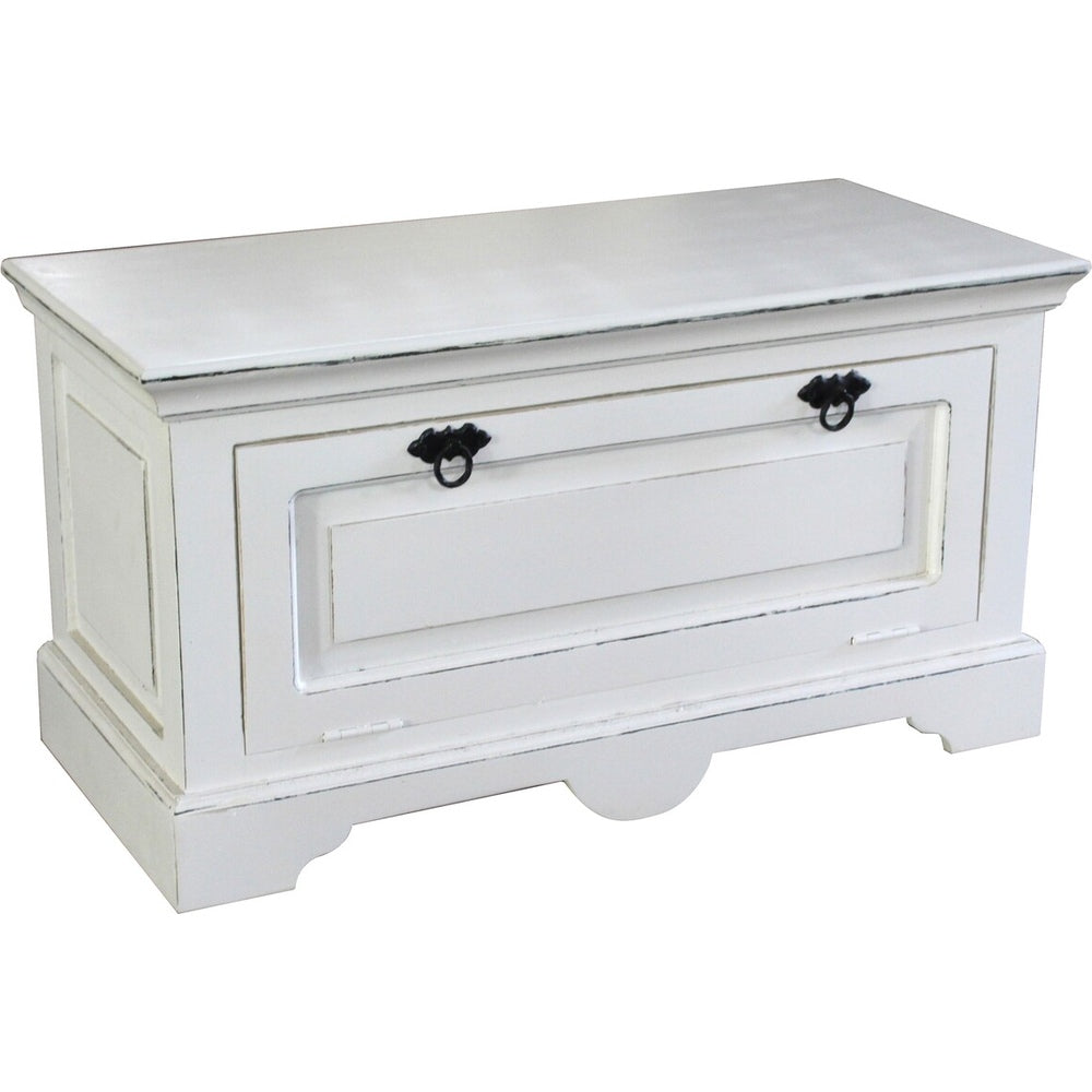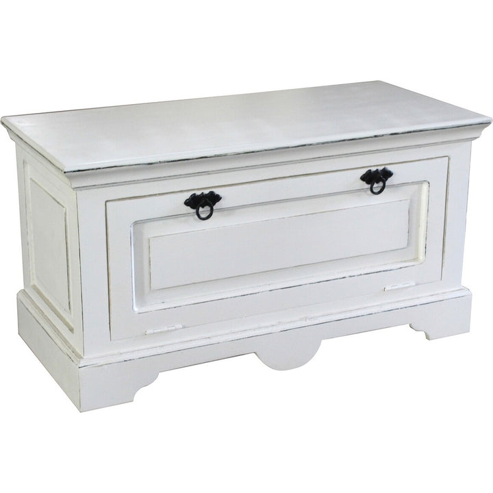 NOTE: Legno di mango e MDF con finitura bianco antico, dimensioni 85×40×45 cm, peso 23,2 kg. Lavorazione artigianale con leggere variazioni di tonalità e segni di usura voluti.