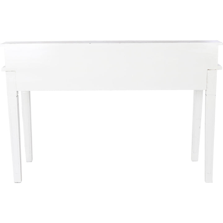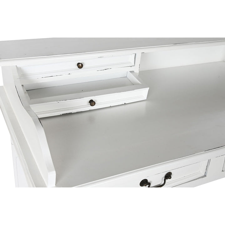 L’Elegante Scrivania Shabby Chic unisce il fascino vintage francese alla solidità del legno massello di mogano, regalando uno stile raffinato e accogliente. La finitura bianca brillante con delicati segni d’usura evoca l’eleganza vissuta dello stile shabby chic, perfetta per ambienti romantici e camere provenzali. Le gambe tornite e le modanature scolpite arricchiscono la struttura, mentre i sette cassetti di varie dimensioni offrono soluzioni pratiche per l’organizzazione. Con dimensioni di 150x57x100 cm e peso di 38 kg, rappresenta un connubio perfetto tra eleganza e funzionalità. Ideale come scrivania bianca decorativa per studi, camere o soggiorni chic, è proposta con sconti fino al 70% su Ethnic Chic.
