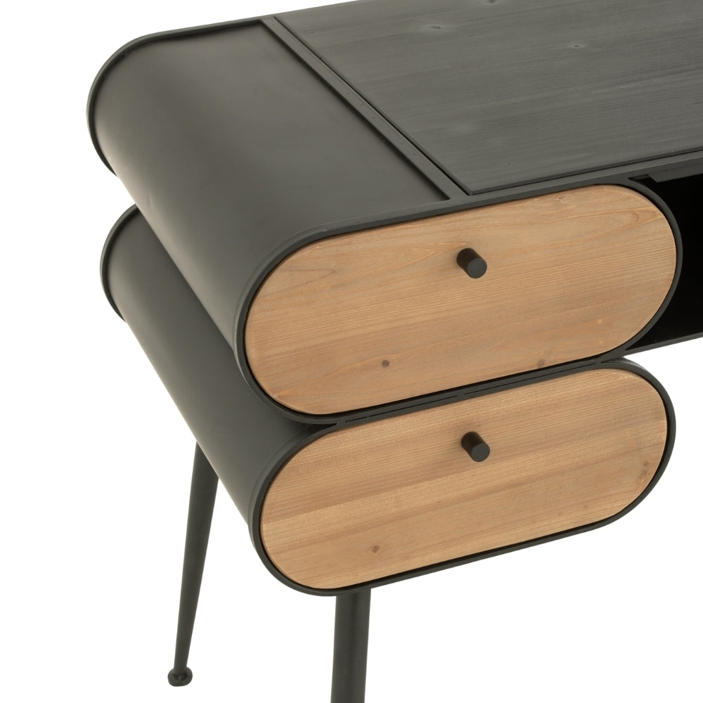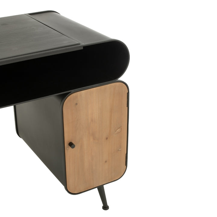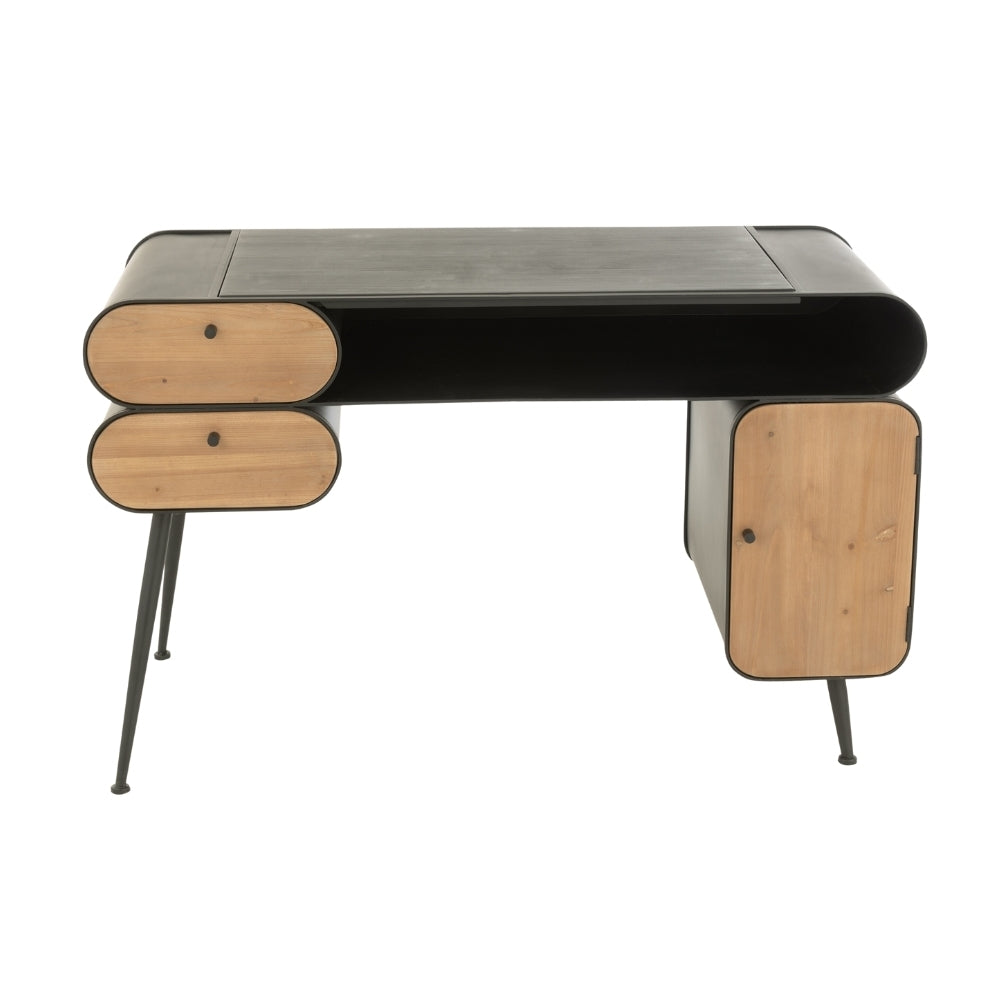 Scrivania in Legno di Abete Nero e Beige Chiaro con Struttura in Metallo