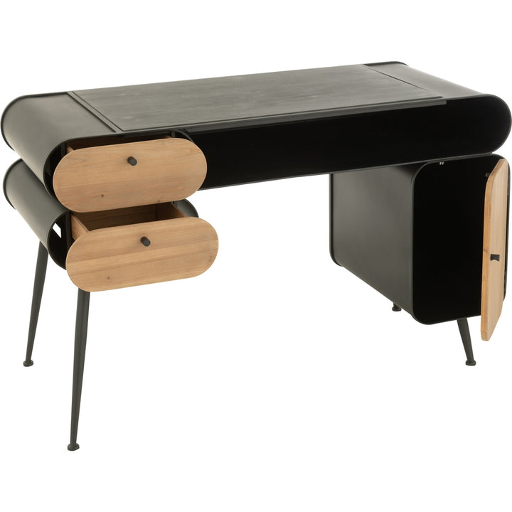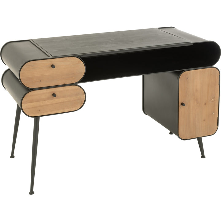 Scrivania in Legno di Abete Nero e Beige con Struttura in Metallo
