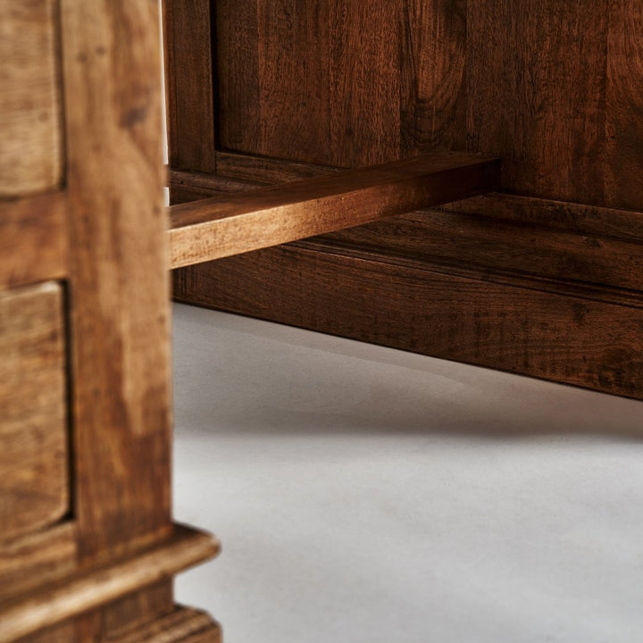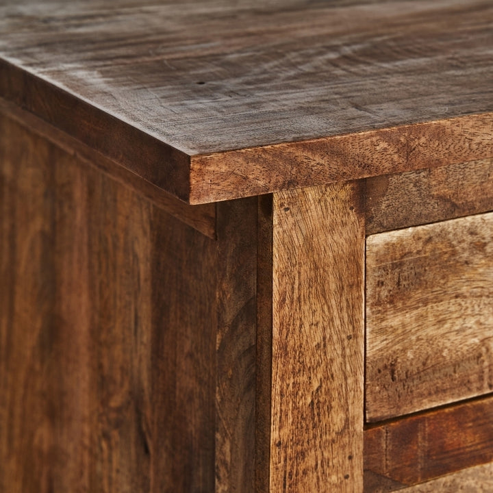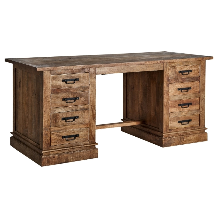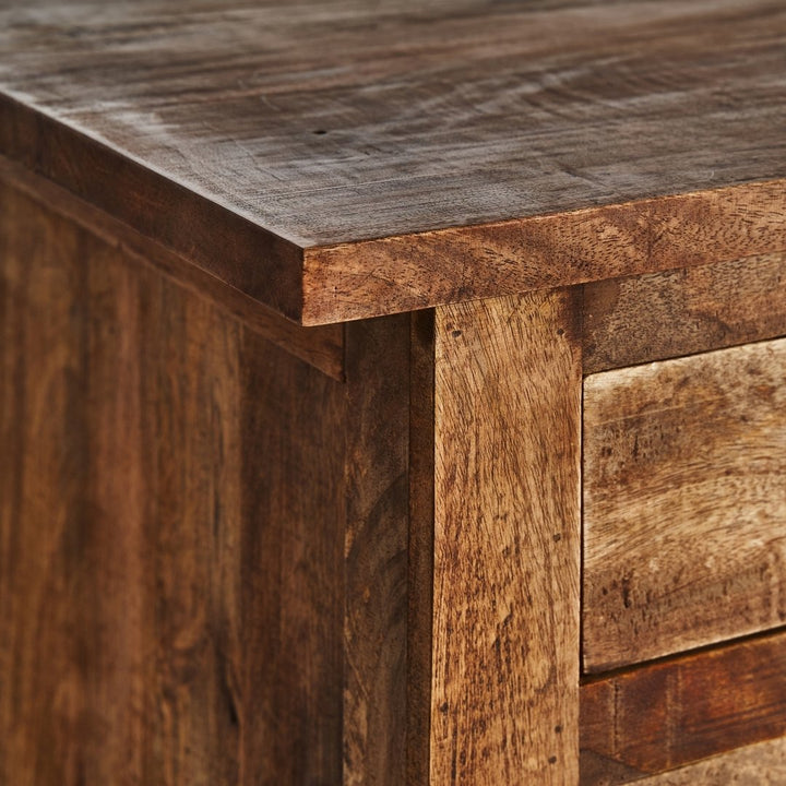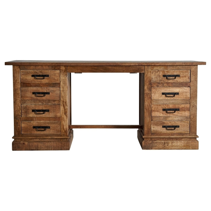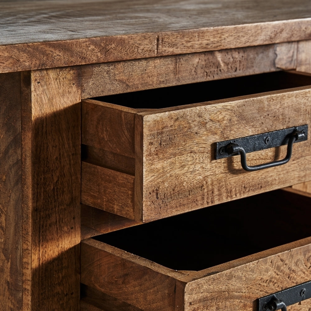 Questa elegante realizzazione in legno di mango si distingue per la sua robustezza e le sue linee raffinate. Con nove cassetti di diverse dimensioni, offre ampio spazio di archiviazione. La sua struttura solida permette di sostenere un peso fino a 70 kg, rendendola ideale per qualsiasi utilizzo, sia in un ufficio che in una stanza. Le sue gambe con uno zoccolo di 8 cm e la distanza tra di loro di 70 cm offrono stabilità e un aspetto distintivo. L'attenzione al dettaglio è evidente anche nello spessore del piano di 2,5 cm e nella spaziatura tra le cassettiere, che fornisce ulteriore spazio. La sua finitura naturale e la qualità del legno di mango lo rendono un pezzo di arredamento che può durare nel tempo.