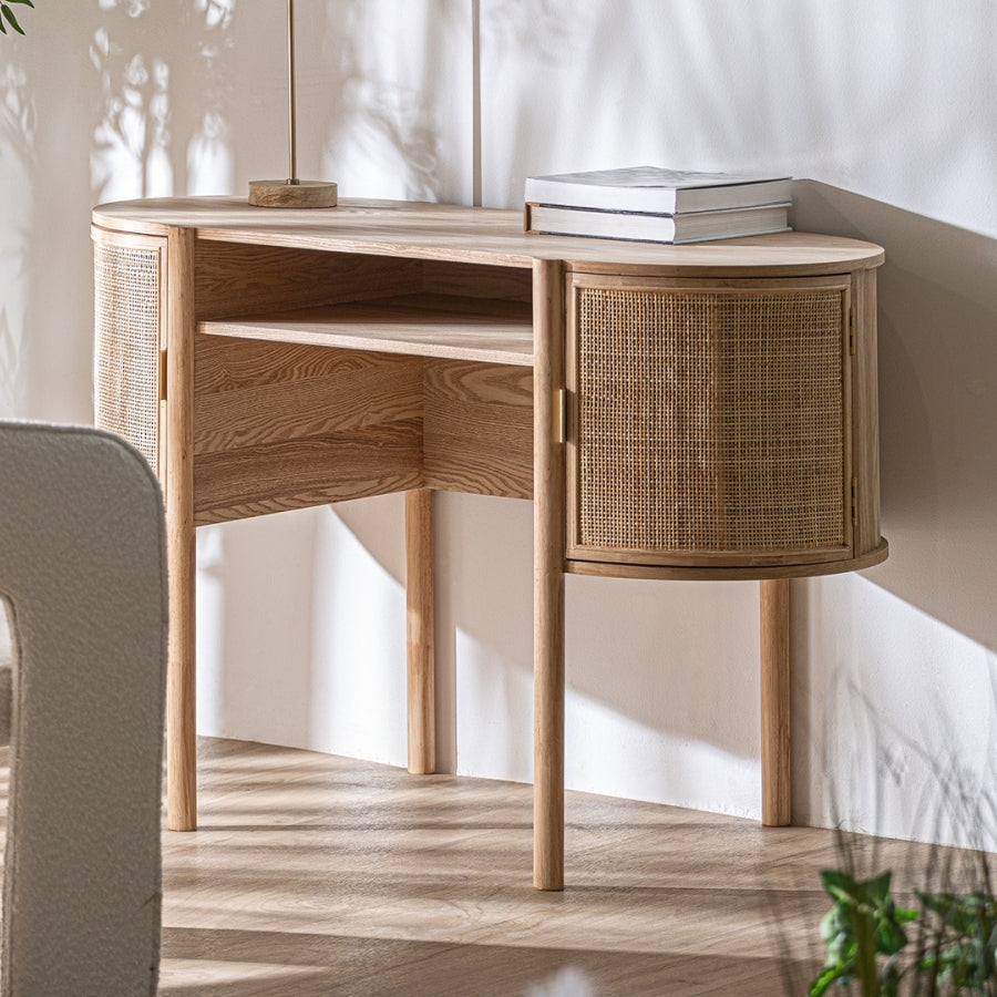 un design che sembra fondere caratteristiche dell'Art Déco con tendenze contemporanee. Il richiamo all'Art Déco è evidente nelle linee curve morbide, l'uso di materiali naturali come il legno, e nei dettagli decorativi come la rete di vimini sui pannelli frontali, che aggiungono un tocco di eleganza e un senso di artigianato raffinato. Contemporaneamente, la semplicità delle forme e l'assenza di ornamenti eccessivi lo rendono adeguato anche agli interni moderni, dimostrando una sottile equilibrio tra il vecchio e il nuovo.
