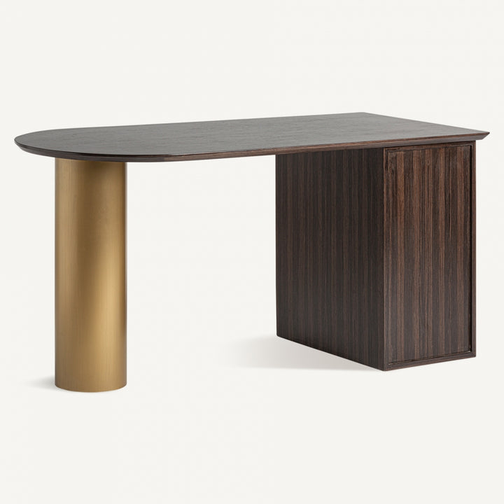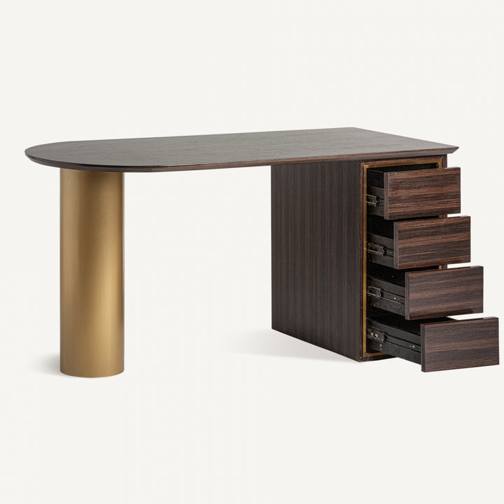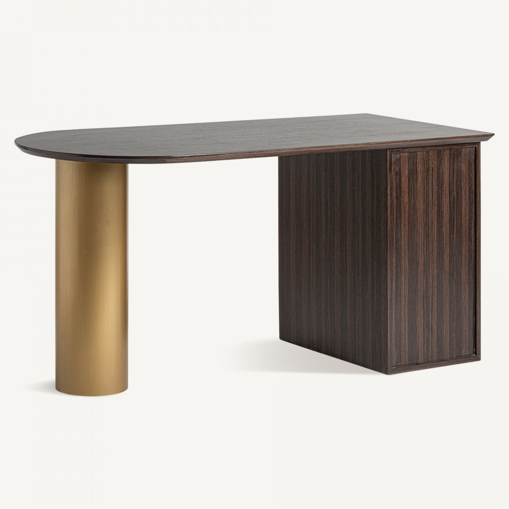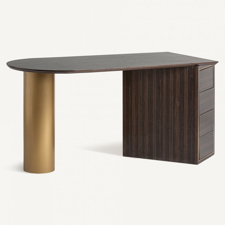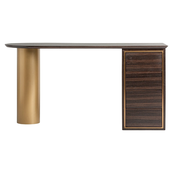 Lo stile Art Déco, noto per le sue linee geometriche e la combinazione di materiali pregiati, aggiunge un tocco di lusso e raffinatezza a qualsiasi spazio. Questa scrivania artigianale esprime perfettamente l'equilibrio tra funzionalità e design decorativo, ideale per ambienti contemporanei o dal sapore vintage. Realizzata in legno massello di pino con dettagli in acciaio dorato, questa scrivania è un mix armonioso di calore naturale e accenti metallici sofisticati. Con dimensioni di 150 x 70 x 76 cm e un peso di 59,6 kg, è progettata per garantire robustezza e praticità. I 4 cassetti interni (26 x 27 x 8 cm) offrono spazio utile per organizzare documenti e accessori. Le gambe in acciaio (20 x 20 x 71 cm) e lo spazio tra esse (72 x 70 x 73 cm) assicurano stabilità e stile. Il piano spesso 3 cm supporta fino a 40 kg, rendendola perfetta per uffici di design, studi eleganti o angoli creativi.