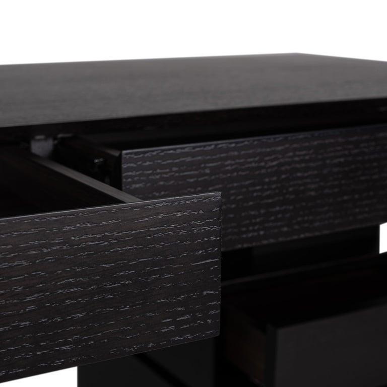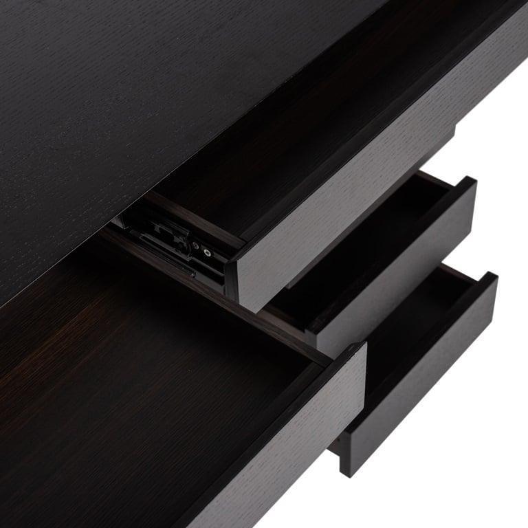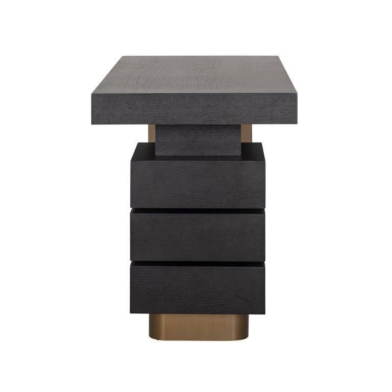 Una scrivania dal design moderno e minimale, ideale per ambienti eleganti e contemporanei grazie alla combinazione di linee pulite e materiali sofisticati. Realizzata in MDF nero effetto legno con gambe in acciaio inox dorato, questa scrivania si distingue per il suo stile glam raffinato. È dotata di 5 cassetti capienti, perfetti per organizzare documenti, accessori da ufficio o oggetti personali. La base strutturata dona stabilità, mentre il top ampio garantisce uno spazio di lavoro confortevole. Il contrasto tra le finiture opache e lucide crea un effetto visivo ricercato. Ideale per home office o ambienti contract che richiedono arredi funzionali ma di impatto. Un arredo che unisce praticità e design contemporaneo, pensato per chi cerca una scrivania minimal ma di grande personalità.