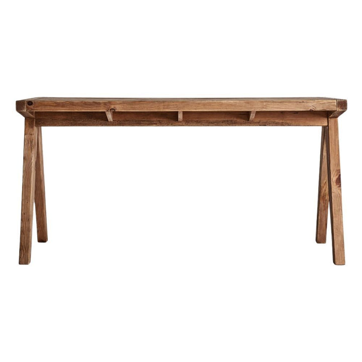 Una scrivania dal design rustico e contemporaneo, perfetta per ambienti di lavoro o studio con un tocco naturale. Il suo stile essenziale e solido la rende un elemento d’arredo versatile e di carattere.