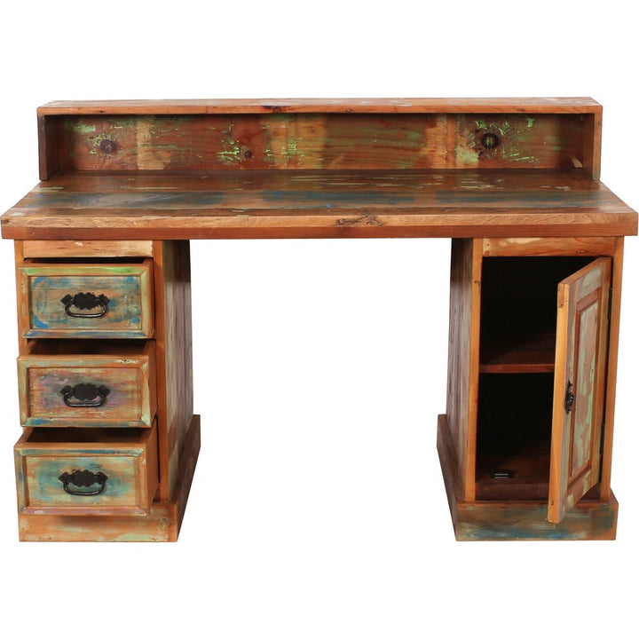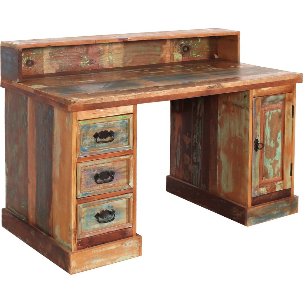 Scrivania in Legno di Recupero con Cassetti Stile Industriale