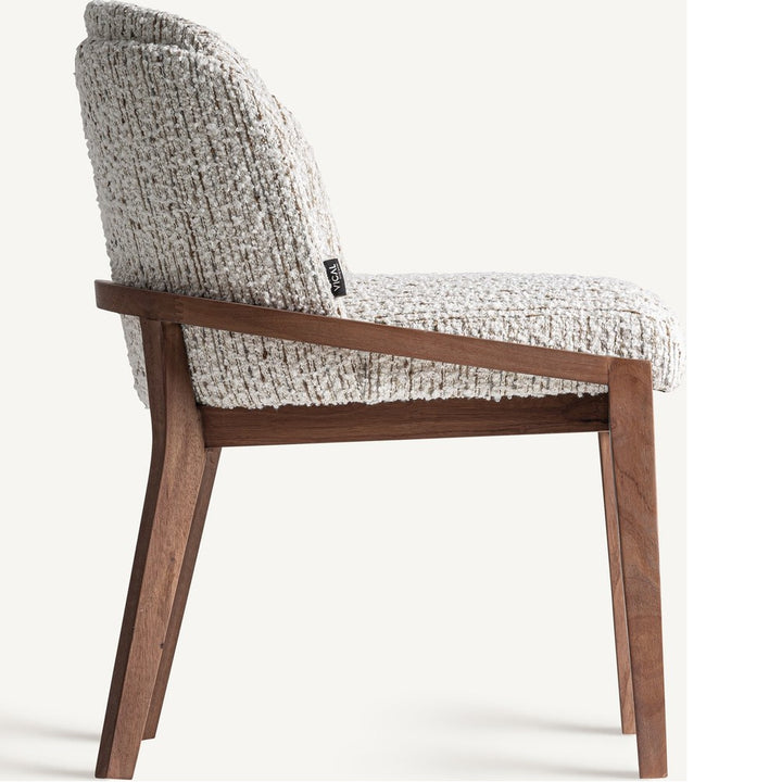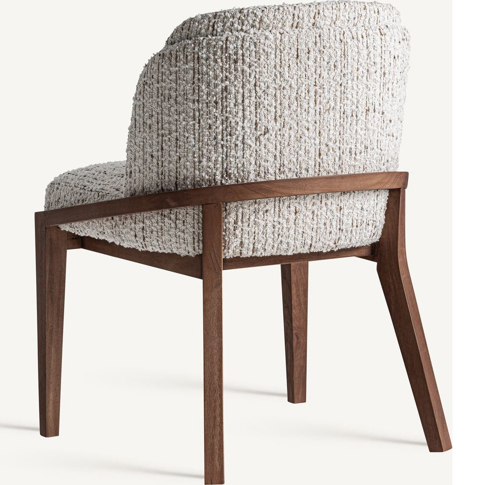 NOTE: Legno di gomma marrone, poliestere beige marmorizzato, schiuma, 11,6 kg, seduta 53 x 51 x 10 cm, altezza seduta 52 cm, portata 105 kg, lavorazione artigianale.