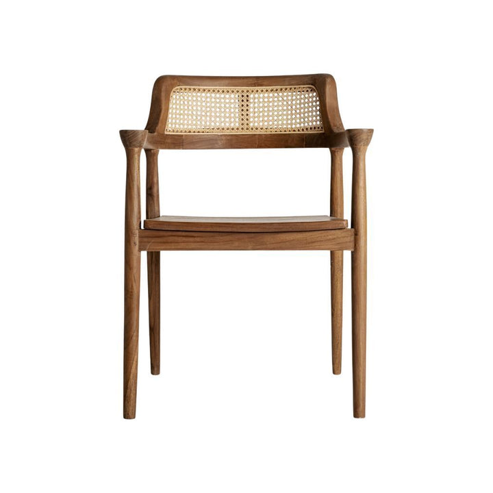 Lo stile Art Déco si distingue per le sue linee eleganti, il design raffinato e l’uso di materiali pregiati. Perfetta per chi cerca sedute eleganti online, questa sedia coniuga fascino retrò e comfort moderno, ideale per arricchire un salotto esclusivo, una sala da pranzo sofisticata o uno studio dal gusto ricercato. Realizzata in legno massello di teak con finitura marrone e seduta in rattan intrecciato, è un pezzo artigianale unico, con leggere variazioni di tonalità e piccole imperfezioni come nodi e segni naturali, che ne esaltano l’autenticità. La struttura solida garantisce stabilità e supporta fino a 100 kg. Il design ergonomico con schienale e braccioli assicura una seduta confortevole. Dimensioni della seduta: 46 x 46 x 2 cm, altezza seduta da terra: 46 cm, altezza braccioli: 66 cm. Consegnata già montata, pronta per valorizzare i tuoi ambienti con un tocco esclusivo.