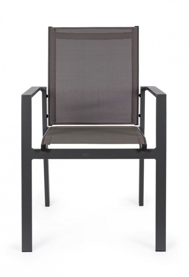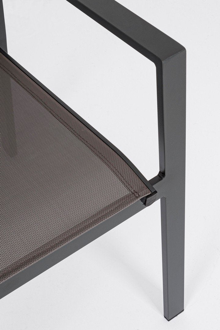 Aggiungi un tocco di eleganza moderna al tuo spazio esterno con questa sedia da giardino dal design contemporaneo. Realizzata con una robusta struttura in alluminio e un rivestimento in textilene antracite, è pensata per unire stile e praticità, rendendola perfetta per ambienti outdoor come giardini, terrazze o patio.